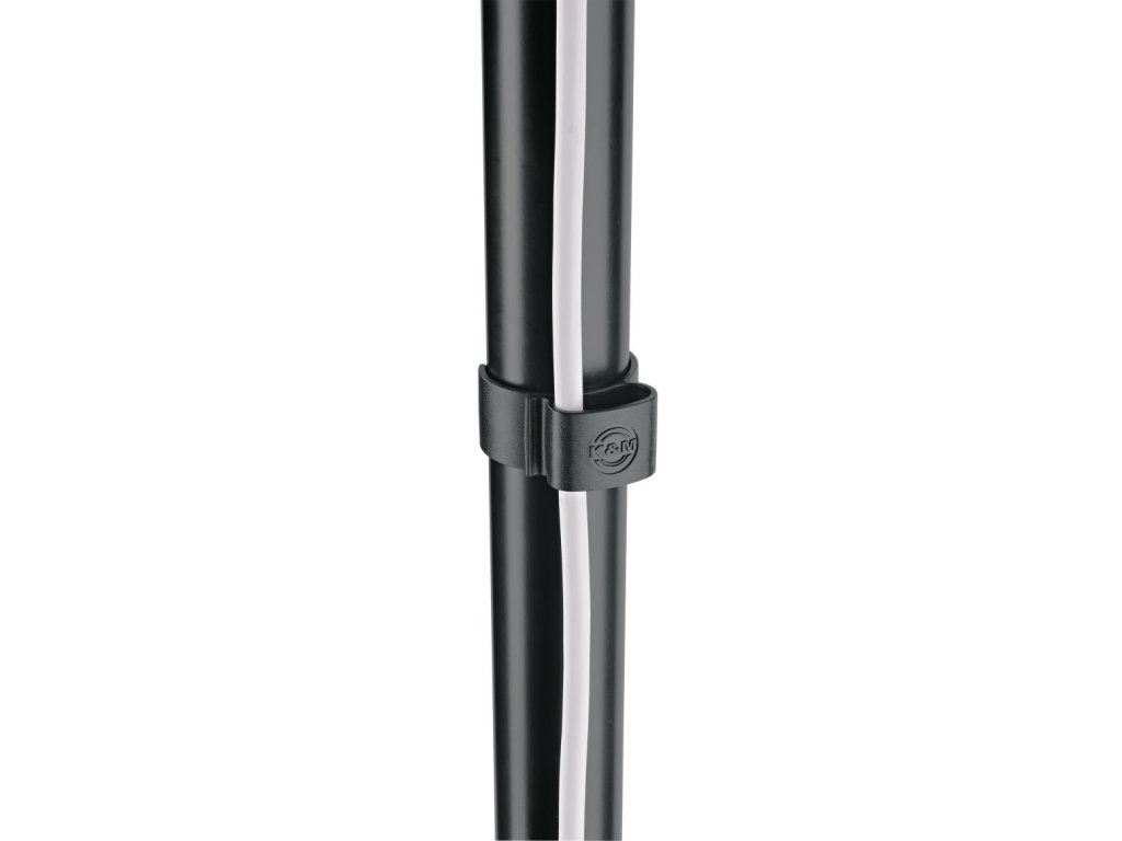 Kabelové svorky (pár) z plastu odolného proti opotřebení vhodné pro reproduktorové a světelné stojany s průměrem tyče od 35 do 42 mm. Vyrábí se v černé barvě.