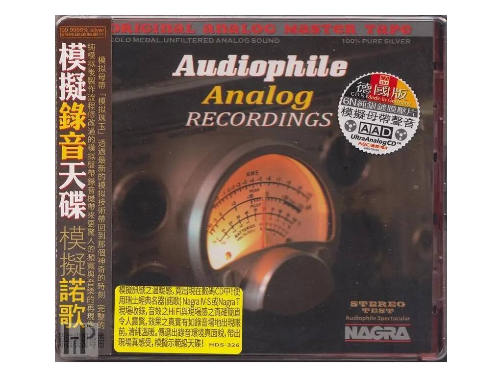 Audiophile Analog Recordings Album Title:Audiophile Analog Recordings Item No:HDS-326 Artists :Various Artists Genre:Hi-Fi Music Company:ABC (Int'l)Records 01 BWV. 565 Toccata - Composer: Bach 03:48 02 TIN PAN ALLEY - Performer: Steve Ray Vaughan 09:14 03 A Traveler in the North - composed by: Tatsuya Chin 03:11 04 The Champions - Singer: ERA 03:25 05 Straighten Up And Fly Right - Singer: Nnenna Freelon 03:23 06 The Hut on Fowl´s Legs, "Baba Yaga" From Pictures At An Exhibition - Performer: BASSIC INSTINCTS 03:35 07 Duet - Performer: Dave Jones & Tom Gordon 01:36 08I’m Getting Good At Missing You Singer:Don Williams 02:56 09 All In love Is Fair - Singer: Nnenna Freelon 06:51 10 Symphony No.40 K.550 - Composer:Mozart 04:13 11 Georgia On My Mind - Singer:Jacintha 05:15 12 Still In Love - Performer: Jaques Morelenbaum & Salvatore Bonafede 03:06 13 Soul Of Great China - Performance: Shanghai Ethical Ensemble 03:46 14 Listen To the Radio - Singer:Don Williams 03:12 15 M’Bifo - Singer: Rokia Traore 02:39 16 Rondoalla Turca - Composer: Mozart 02:21 17 March in B Flat Major,Op.99 - Composer: Serge Prokofiev 02:29 Total Time: 64:39Doplňkové parametry