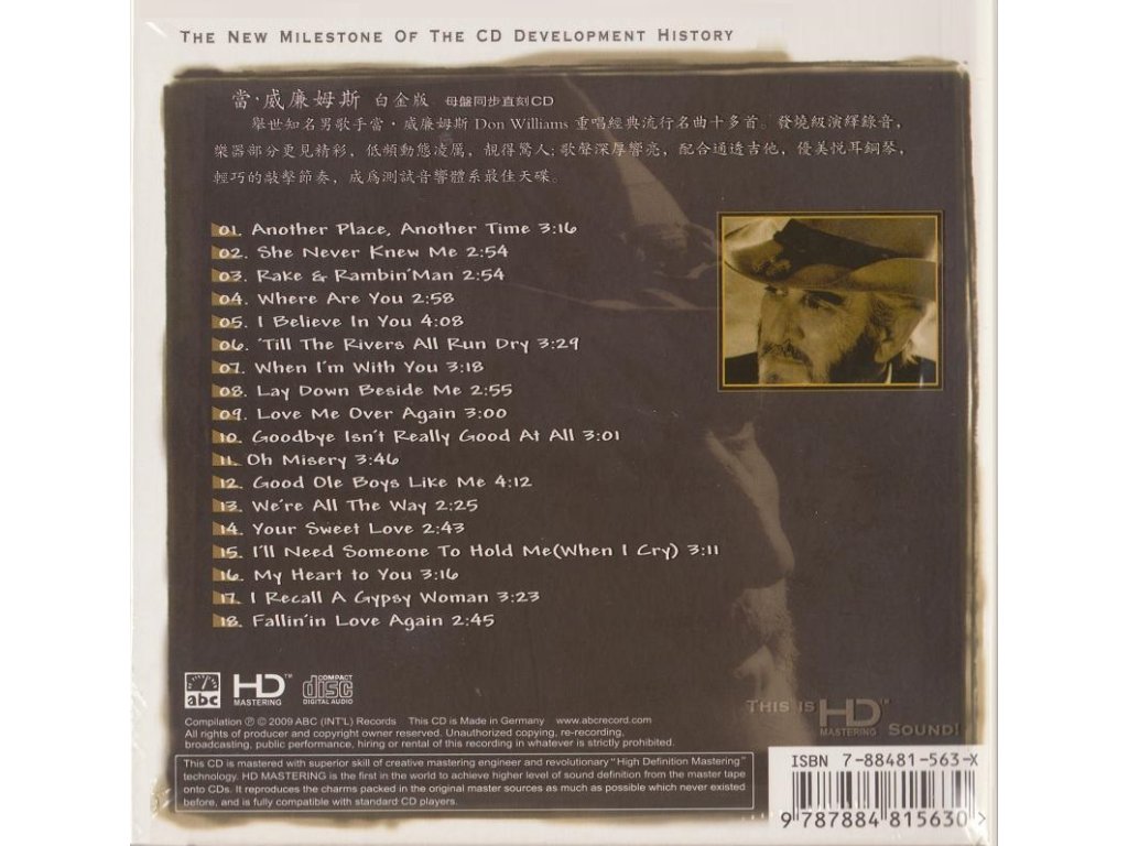 Referenční CD / HD Mastering / Natural Dynamics / Made in Germany / Western Electric edice01 Another Place, Another Time02 She Never Knew Me03 Rake & Rambin'Man04 Where Are You05 I Believe In You06 Till The Rivers All Run Dry07 When I'm With You08 Lay Down Beside Me09 Love Me Over Again10 Goodbye Isn't Really Good At All11 Oh Misery12 Good Ole Boys Like Me13 We're All The Way14 Your Sweet Love15 I'll Need Someone To Hold Me (When I Cry)16 My Heart to You17 I Recall A Gypsy Woman18 Fallin'in Love AgainDoplňkové parametry