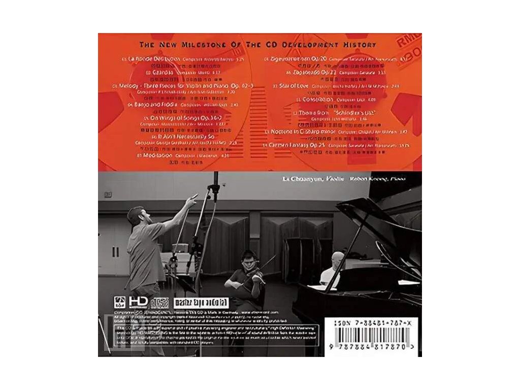 ABC Records - Li Chuanyun Violin—Melody Album Title:Li Chuanyun Violin—Melody Item No:HDS-218 Artists :Li Chuanyun Genre:Instrumental Music Company:ABC (Int'l)Records 01 La Ronde Des Lutins - Composer: Antonio Bazzini 05:25 02 Czardas - Composer: Monti 04:37 03 Melody-Three Pieces for Violin and Piano Op.42-3 - Composer: P.I.Tchaikovsky/Arr:Ivan Galamian 03:20 04 Banjo and Fiddle - Composed:William Kroll 02:46 05 On Wings Of Songs Op.34-2 - Composer: Mendelssohn Arr:Milstein 03:18 06 It Ain`t Necessarily So - Composer: George Gershwin/Arr: Jascha Heifetz 02:19 07 Meditation - Composer: J.Massenet 04:31 08 Zigeunerweizen,Op.20 - Composer: Sarasate/Arr:Francescatti 08:55 09 Zapateado Op.23 - Composer: Sarasate 03:13 10 Star of Love - Composer:Jescha Heifetz Arr: M.M.Ponce 02:44 11 Consolation - Composer: Liszt 04:09 12 Theme from “Schindler’s List” - Composer: John Williams 03:46 13 Nocturnes in C-sharp minor - Composer: Chopin Arr: Milstein 03:47 14 Carmen Fantasy Op.25 - Composer: Sarasate/Arr:Francescatti 13:25Doplňkové parametry