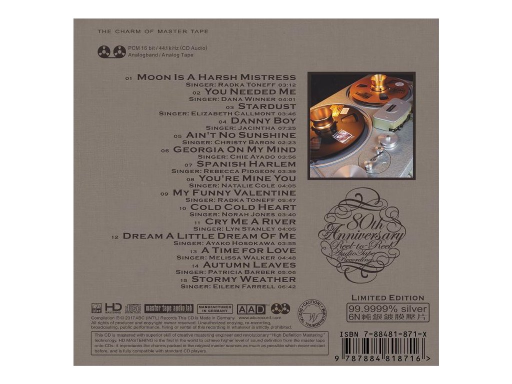 Potions-Classical Power Test Album Title:Potions-Classical Power Test Item No:HDS-125 Artists :Various Artists Genre:Country , Folk Music , Jazz , Pop Company:ABC (Int'l)Records Tracklist:01 - Radka Toneff - Moon Is A Harsh Mistress ...3:1202 - Dana Winner - You Needed Me ...4:0103 - Elizabeth Callmont - Stardust ...3:4604 - Jacintha - Danny Boy ...7:2505 - Christy Baron - Ain't No Sunshine ...2:2306 - Chie Ayado - Georgia On My Mind ...3:5607 - Rebecca Pidgeon - Spanish Harlem ...3:3908 - Natalie Cole - You're Mine You ...4:0509 - Radka Toneff - My Funny Valentine ...5:4710 - Norah Jones - Cold Cold Heart ...3:4011 - Lyn Stanley - Cry Me A River ...4:0512 - Ayako Hosokawa - Dream A Little Dream Of Me ...3:5513 - Melissa Walker - A Time for Love ...4:4814 - Patricia Barber - Autumn Leaves ...5:0615 - Eileen Farrell - Stormy Weather ...6:42Doplňkové parametry