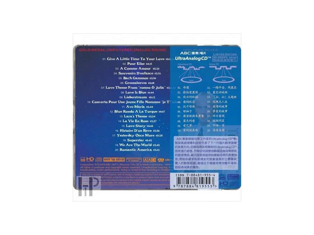 ABC Records - Lyphard Melody Album Title:ABC Records - Lyphard Melody Item No:HDS-358 Artists :Various Artists Genre:Pianist Company:ABC (Int'l)Records - 6N 99,9999% Pure Silver 01 GIVE A LITTLE TIME TO YOUR LOVE02 POUR ELISE03 A COMME AMOUR04 SOUVENIRS D’ENFANCE05 BACH GAMMON06 GREENSLEEVES07 LOVE THEME FROM “ROMEO & JULIA”08 LOVE IS BLUE09 LIEBERSTRAUM10 10CONCERTO POUR UNE JEUNE FILLE NOMMEE “JE T’AIME”11 AVE MARIA12 BLUE RONDO A LA TURQUE13 LARA’S THEME14 LA VIE EN ROSE15 LOVE STORY16 HISTOIRE D’UN REVE17 YESTERDAY ONCE MORE18 SUPERSTAR19 WE ARE THE WORLD20 ROMANTIC AMERICADoplňkové parametry