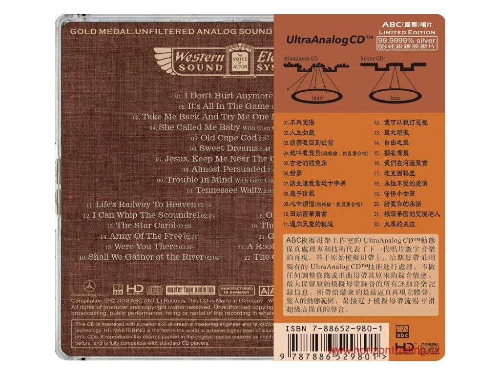 Tennessee Ernie Ford - Country Songs Album Title:Tennessee Ernie Ford - Country Songs Item No:HDS-188s Artists :Tennessee Ernie Ford Genre:Country Company:ABC (Int'l)Records 01 I Don’t Hurt Anymore - Singer:Tennessee Ernie Ford 02:45 02 It’s All In The Game - Singer:Tennessee Ernie Ford 01:57 03 Take Me Back And Try Me One More Time - Singer:Tennessee Ernie Ford 02:36 04 She Called Me Baby - Singer:Tennessee Ernie Ford (With Glen Campbell) 03:01 05 Old Cape Cod - Singer:Tennessee Ernie Ford 02:37 06 Sweet Dreams - Singer:Tennessee Ernie Ford 02:48 07 Jesus, Keep Me Near The Cross - Singer:Tennessee Ernie Ford 03:32 08 Almost Persuaded - Singer:Tennessee Ernie Ford 02:47 09 Trouble In Mind - Singer:Tennessee Ernie Ford (With Glen Campbell) 03:02 10 Tennessee Waltz - Singer:Tennessee Ernie Ford 02:05 11 Life's Railway To Heaven - Singer:Tennessee Ernie Ford 03:10 12 I Can Whip The Scoundrel - Singer:Tennessee Ernie Ford 02:07 13 The Star Carol - Singer:Tennessee Ernie Ford 02:28 14 Army Of The Free - Singer:Tennessee Ernie Ford 02:09 15 Were You There - Singer:Tennessee Ernie Ford 03:39 16 Shall We Gather at the River - Singer:Tennessee Ernie Ford 02:04 17 Union Dixie - Singer:Tennessee Ernie Ford 02:23 18 Old Fashioned Love - Singer:Tennessee Ernie Ford 02:28 19 The Strange Little Girl - Singer:Tennessee Ernie Ford 03:01 20 Give Me Your Word - Singer:Tennessee Ernie Ford 03:11 21 A Rootin' Tootin' Santa Claus - Singer:Tennessee Ernie Ford 01:53 22 The Cry of the Wild Goose - Singer:Tennessee Ernie Ford 03:15Doplňkové parametry
