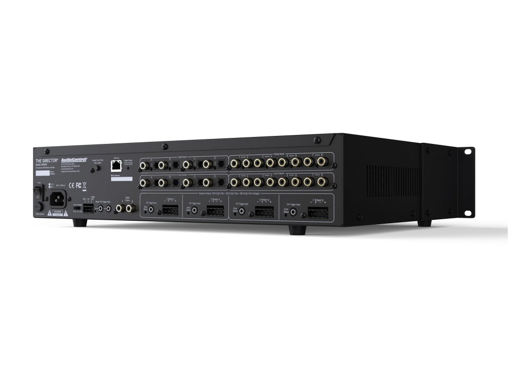 DIRECTOR MODEL M4840 Kompaktní matrix zesilovač určený pro projekty s  až osmi stereo okruhy.  Je skvěle vybavený a dostatečně vý konný . Je navržen exkluzivně pro zá kaznické instalace. Director Model M4840 naplno využí vá v&scaron ech benefitů té to sé rie, je vybaven vý konem 100Watt/kaná l/8 Ohm nebo 200Watt/kaná l/4 Ohm. Director Model M4840 je možné ří dit mnoha externí mi ří dí cí mi syté my. Jeho vý roba je realizová na v  USA, v  Seattlu. VLASTNOSTI Sí ťový DHCP matrix zesilovač s  ří zení m hlasitosti Vý kon 8 x 100 Watt/kaná l do 8 Ohm Vý kon 8 x 200 Watt/kaná l do 4 Ohm Možnost můstkovat do 4 kaná lů při 400 Watt/kaná l Využití DSP procesoru Předprogramovaná nastavení pro řadu reprosoustav Ethernet port pro monitoring a nastavení Vestavěný switch může posí lat jeden ze zdrojů analog/digital na jaký koliv vý stup Možnost pojmenová ní jednotlivý ch okruhů Kompaktní vý &scaron ka 2U 2x vstup localBus 12V trigger in/out Vstup pro loká lní vstup Residenční a komerční využití VSTUPY 8 x stereo analog / 4x digital coax/Toslink vstupy Vý stupní citlivost: 1Vrms pro v&scaron echny vý stupy/max. hlasitost   VÝ STUPY Počet kaná lů zesilovače: 8x Vý stupní vý kon : 100Watt/8Ohm Vý stupní vý kon : 200Watt/4Ohm Vý stupní vý kon (do můstku): 400 Watt Minimá lní impedance: 4 Ohm OVLÁ DÁ NÍ Spí ná ní (trigger): +12VDC Sí ťové připojení : 10BaseT Ethernet TCP/IP Komunikační protokol: HTTP nebo Telnet PARAMETRY Damping faktor: ví ce než 300 Odstup signá l/&scaron um: 95dB DAC specifikace: 30-96kHz vzorková ní , 16/24bit Vá ha a rozměry: Rozměry (&scaron xvxh):430x298x89 mm Vá ha: 7.5kgDoplňkové parametry
