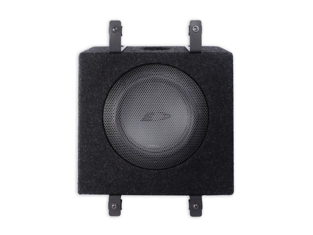 - Přiložený 180W subwoofer s dřevěným krytem pro instalaci pod sedadlo spolujezdce dodává silné basy.