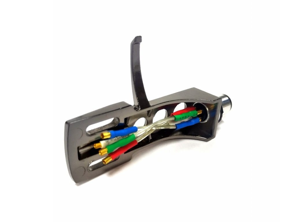 Kvalitní headshell v luxusním provedení včetně propojovacích OFC drátků s pozlacenými piny pro připojení gramofonové přenosky Postříbřené OFC drátky / pozlacené piny Hmotnost: 9g Barevné provedení: TitaniumDoplňkové parametry