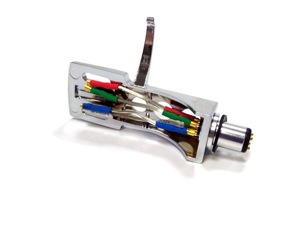 Kvalitní headshell v luxusním provedení včetně propojovacích OFC drátků s pozlacenými piny pro připojení gramofonové přenosky Postříbřené OFC drátky / pozlacené piny Hmotnost: 9g Barevné provedení: ChromDoplňkové parametry