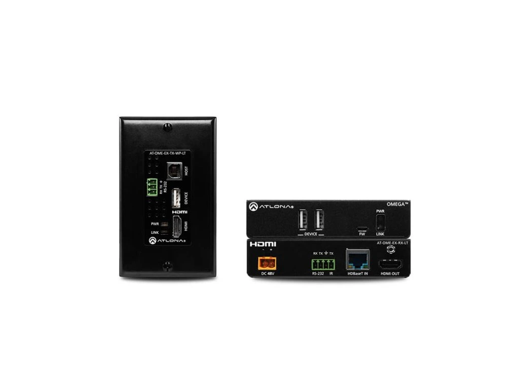 Atlona AT-OME-EX-WP-KIT-LT HDBaseT extender kit pro HDMI®, napájení, řízení a USB USB 2.0 rozhraní a přenos signálu až do 70 metrů Vyměnitelný černý a bílý kryt pro wallplate Podpora 4K/UHD 60 Hz 4:2:0 HDCP 2.2 Vysílač napájen přijímačem přes HDBaseT Dostupné také jako: AT-OME-EX-WP-KIT (přenos signálu až do 100 metrů) Atlona AT-OME-EX-WP-KIT-LT je HDBaseT extender s podporou až 4K/60 4:2:0, také podporuje embedované audio, řízení a přenáší USB do vzdálenosti až 40 metrů pro 4K/UHD a do vzdálenosti 70 metrů pro 1080p/60 video. U wallplate vysílače možnost vyměnitelného černého a bílého krytu. OME-EX-WP-KIT-LT podporuje HDCP 2.2 a vysílá RS-232 řídicí signály. Integrované USB rozšíření řeší problémy s připojením mezi USB zařízením na hůře dostupných místech a je ideální pro video konferenční software a dotykové nebo interaktivní displeje. Vysílač obsahuje USB 2.0 rozhraní pro PC a také pro zařízení jako reproduktor, mikrofon nebo klávesnice a myš. Přijímač obsahuje dvě USB rozhraní pro zařízení jako je kamera, soundbar nebo displej. Video, audio, napájení a přenos data přes CAT kabel s použitím HDBaseT technologie Přenáší 4K/UHD video až do 70 metrů při rozlišení 1080p nebo až do 40 metrů při rozlišení 4K/UHD s použitím CAT6a/7 kabelu Navrženo pro použití s CAT kabelem pro cenově dostupný ale spolehlivý systém USB 2.0 rozhraní a přenos až do 70 metrů Vysílač obsahuje rozšíření USB typ B pro připojení PC hosta a také USB typ A port pro zařízení jako je mikrofon nebo reproduktory Přijímač má dva porty USB typu A pro připojení zařízení jako je kamera nebo displej Podporuje USB 2.0 zařízení, USB 3.0 zařízení kompatibilní s USB 2.0 a USB 1.x Poskytuje ideální USB řešení pro video konferenční software a další * Podporuje maximální rychlost přenosu dat 120 Mb/s, kvůli limitu přenosu dat u USB přes HDBaseT. US one-gang wallplate – vyměnitelný černý a bílý kryt Umožňuje instalaci na zeď, do nábytku nebo do stolu nebo podlahového boxu. Balení obsahuje vyměnitelné černé a bílé kryty. Splňuje požadavky koncových zákazníků pro snadno přístupné ale stále diskrétní AV připojení Podpora 4K/UHD 60 Hz 4:2:0 Kompatibilní se zdroji v rozlišení až do 4K/60 4:2:0 a 4K/30 4:4:4 Podporuje HDMI rychlost přenosu dat až 10 Gb/s z počítačů, přehrávačů a Ultra HD Blu-ray přehrávačů HDCP 2.2 Drží se poslední specifikace pro High-bandwidth Digital Content Protection Umožňuje chráněné sdílení obsahu pro průchod mezi ověřenými zařízeními. Vysílač napájen přijímačem přes HDBaseT Standardní IEEE 802.3af PoE pro vysílač dodáván přes přijímač přes HDBaseT Umožňuje instalaci na zdi, do stolu, podlahy nebo nábytku bez nutnosti lokálního napájení Vícekanálové audio Podporuje přenos vícekanálových audio formátů Podporuje PCM, Dolby® Digital, Dolby Digital Plus™, Dolby TrueHD, Dolby Atmos®, DTS® Digital Surround™, DTS-HD Master Audio™ a DTS:X® Možnost testování kvality HDBaseT Free software utility available for testing integrity of the HDBaseT cable link between the transmitter and the receiver Provides real-time link status, plus detailed HDBaseT and HDMI signal information Quick, easy verification or troubleshooting of RJ-45 termination or twisted pair cable quality Jednoduše aktualizovatelný firmware Zařízení může být aktualizováno přes USB port Napájení na předním panelu a LED kontrolky, které informují o stavu zařízení LED indikátory informují o stavu napájení a HDBaseT Umožňuje snadnou správu a řešení při potížích Nízký profil, 26 mm vysoký přijímač Jednoduché pro instalaci do prostor pod stolem, do nábytku nebo za displejem Příslušenství Manuál, vyměnitelné černé a bílé kryty, montážní hardware a externí napájecí zdrojDoplňkové parametry