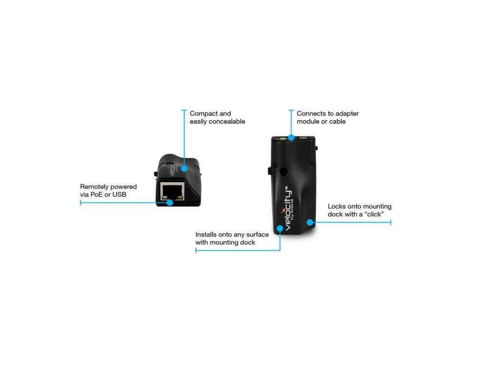 Atlona AT-VCC-IR-KIT je příslušenství k Atlona Velocity řídicímu systému, který poskytuje převod z IP řídicích příkazů na IR. Tento Velocity Control konvertor je velice kompaktní a může být použit všude, kde se požaduje řízení zařízení, které není možné řídit po IP. Výrobce: Atlona, model: AT-VCC-IR-KIT AT-VCC-IR-KIT - Velocity příslušenství, které provádí převod z IP řídicích příkazů na IR Atlona AT-VCC-IR-KIT je příslušenství k Atlona Velocity řídicímu systému, který poskytuje převod z IP řídicích příkazů na IR. Tento Velocity Control konvertor je velice kompaktní a může být použit všude, kde se požaduje řízení zařízení, které není možné řídit po IP. VCC-IR-KIT je vzdáleně napájeno přes Power over Ethernet (PoE) nebo lokálně z USB napájecího zdroje. Zařízení je možné nainstalovat na jakýkoli povrch. Jednoduché “zacvaknutí” zajistí bezpečnou a spolehlivou instalaci. IR adaptér zahrnuje 3x 3.5 mm porty pro připojení do AT-VCC-IR-EMT emitterů. Každý port je nezávisle adresován, umožňuje diskrétní IR ovládání třech různých AV zařízení. Komplexní podpora jiných AV zařízeních Velocity řídicí systém může být integrován s celou řadou zdrojů, displejů, DSP, videokonferenčních systémů a s mnoho dalšími typy AV zařízení. Zde najdete kompletní seznam podporovaných zařízení. Zařízení v této databázi jsou připravené pro okamžitou integraci do Velocity řídicího systému s pomocí pouze pár kliků. Bez potřeby stahování nebo instalace ovladačů. Vlastnosti: Umožňuje převod mezi IP a IR příkazy pro Velocity řídicí systém Kompaktní faktor – nenápadný a snadno zakrývatelný Snadné nastavení a konfigurace z Velocity Control Gateway Napájení přes PoE (Power over Ethernet) Může být také napájen přes USB z USB napájecího zdroje Zařízení je možné nainstalovat na jakýkoli povrch Jednoduché “zacvaknutí” zajistí bezpečnou a spolehlivou instalaci 3x 3.5 mm porty pro připojení do AT-VCC-IR-EMT emitterů, dostupné odděleně Každý port je nezávisle adresován pro diskrétní IR ovládání tří různých AV zařízeních Vestavěné učení IR a přístup do rozsáhlé databáze kódů zařízení IR Záruka 10 letDoplňkové parametry