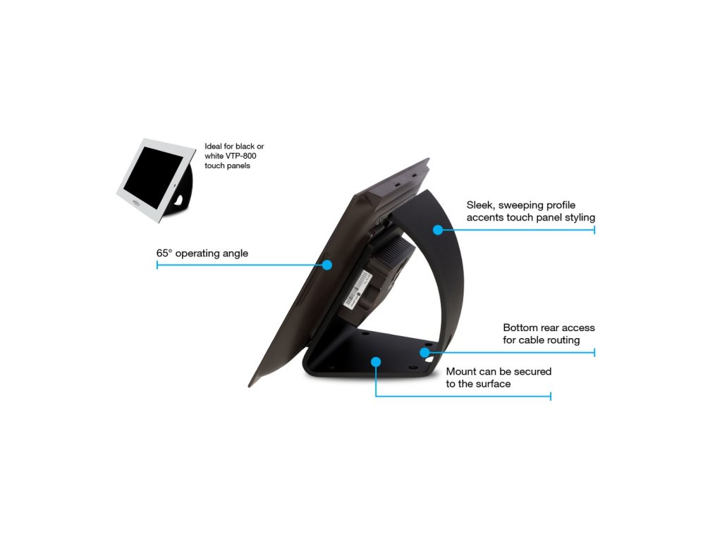 VTP-TMK Atlona AT-VTP-TMK je stolní montážní sada pro ovládací dotykové panely AT-VTP-800-BL a AT-VTP-800-WH pro řídicí systém Velocity. Umožňuje pohodlné umisťování dotykového panelu na stůl kdekoli, kde je potřeba. Otvor ve spodní části umožňuje snadné vedení síťových kabelů. VTP-TMK lze také upevnit na povrch pro trvalou instalaci.Doplňkové parametry