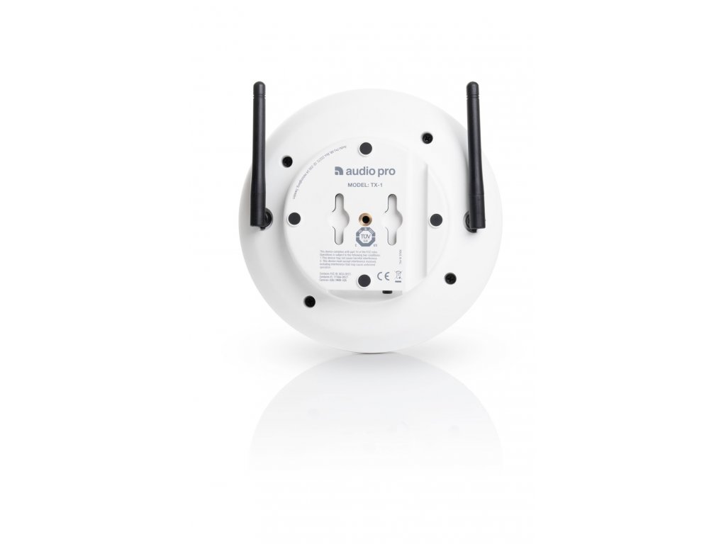 Audio signál je do sítě Audio Pro připojen přes tento vysílač TX-1. Jako všechny komponenty, i tento funguje na 1.9GHz. Zdroj audio signálu se připojí přes 3.5mm Jack. Dosah komponentu je mezi 20-100m, podle struktury místnosti.Doplňkové parametry
