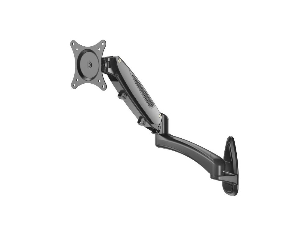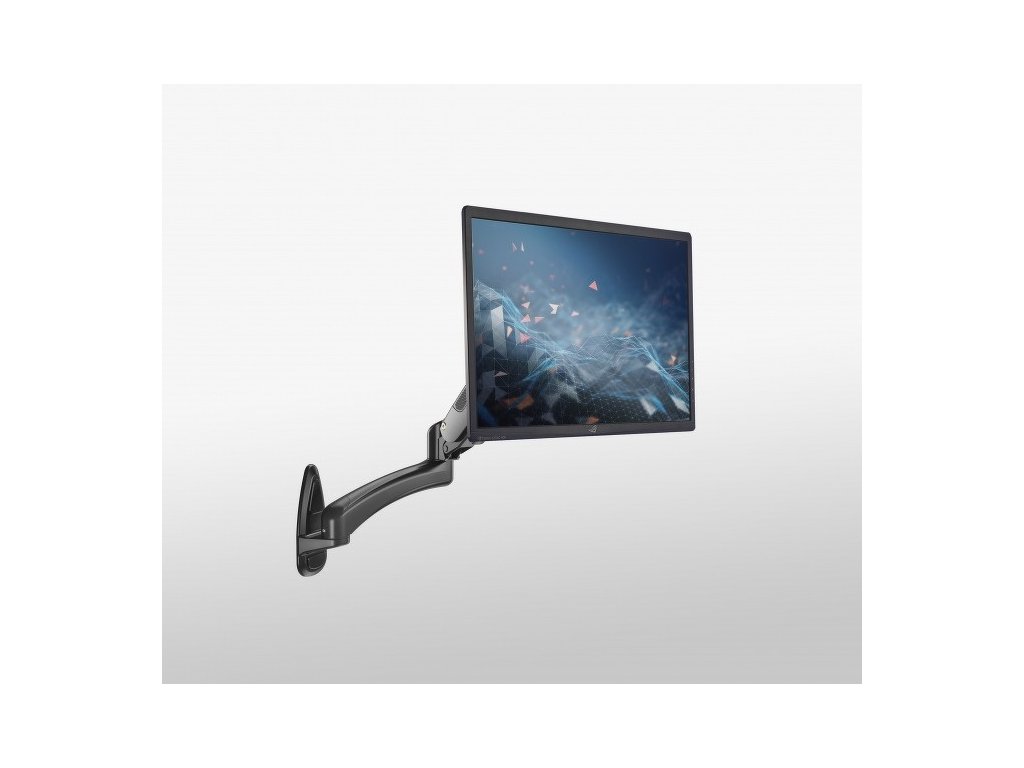 Nástěnný držák monitoru. Vhodný pro monitory do velikosti 32". Robustní hliníková konstrukce s integrovanou plynovou pružinou. Nosnost 8 kg. Připevňovací deska je navržena pro velikosti VESA 75/75 a 100/100. Plynulé nastavení výšky do 350 mm. lze plynule naklánět a otáčet podle potřeby. Integrované umístění kabelů zaručuje čistý pracovní prostor. Vyrábí se v černé barvě.