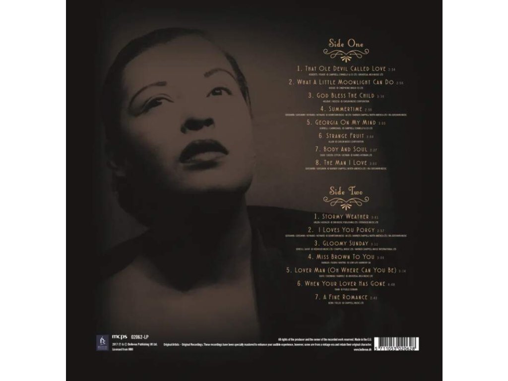 Miles Davis - All Blues Bellevue Entertainment 180g, Reference master vinyl, Limited edition, 100 % analogové album s referenční zvukovou kvalitou- Analog Experience Exkluzivní obal a příslušenství podtrhuje výjimečnost těchto nahrávek od Bellevue Entertainment SIDE ONE:1. That Ole Devil Called Love2. What A Little Moonlight Can Do3. God Bless The Child4. Summertime5. Georgia On My Mind6. Strange Fruit7. Body And Soul8. The Man I Love SIDE TWO:1. Stormy Weather2. I Loves You Porgy3. Gloomy Sunday4. Miss Brown To You5. Lover Man (Oh Where Can You Be)6. When Your Lover Has Gone7. A Fine RomanceDoplňkové parametry