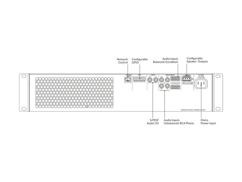 | Vstupy: | 1 x digitální koaxiální, 4 x symetrický linkový Euroblock vstup, 4 x linkový RCA vstup, 1 x ethernet RJ45, 1 x GPIO Euroblock |