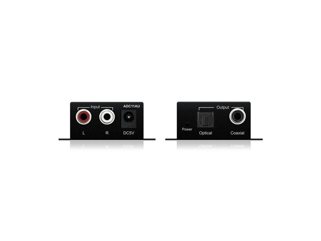 Blustream ADC11AU je převodník analogového signálu na digitální audio, Plug & Play, výrobce: Blustream, model: ADC11AU Blustream ADC11AU převádí L/R analogové stereo audio na koaxiální nebo optický digitální signál. Oba digitální výstupy jsou simultánní, což umožňuje přenášení zvuku na více míst. ADC11AU převádí na 16-bit 48 kHz digitální audio. Vlastnosti: Převádí vstupní L/R analogové stereo audio na SPDIF optický a koaxiální digitální PCM výstup Optický digitální a koaxiální digitální výstup je simultánní Převádí na 16-bit 48 kHz digitální audio Plug & PlayDoplňkové parametry