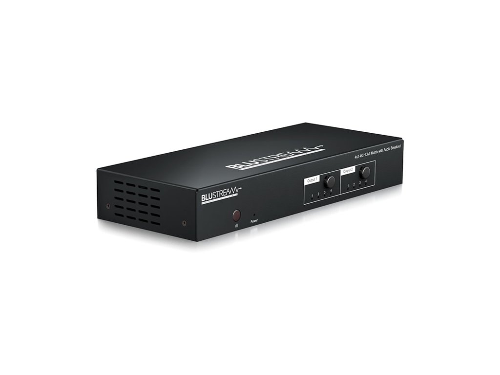 Blustream CMX42AB 4K HDMI maticový přepínač 4x2 CMX42AB podporuje HDMI 2.0 a HDCP 2.2, což umožňuje přenos ze 4 HDMI zdrojů na 2 zobrazovače. To umožňuje aby se všechny zdroje zobrazovaly v rámci konfigurace matice. Zařízení přenáší všechny HDMI rozlišení až do 4K 60Hz 4:4:4 včetně. Blustream CMX42AB maticový přepínač obsahuje také audio breakout a EDID management. Vlastnosti: 4x HDMI vstupy, které mohou být nezávisle směrovány na 2x HDMI výstupy Podpora HDMI 2.0 18Gb/s včetně HDR Podpora 4K UHD 60Hz 4:4:4 Podporuje všechny standardní video rozlišení včetně VGA-WUXGA a 480i-4K Podporuje všechny digitální HDMI audio formáty včetně Dolby TrueHD, Atmos; DTS-HD Master Audio a DTS:X HDMI audio breakout na přidružené analogové audio výstupy L/R a digitální koaxiální výstupy zároveň Ovládání pomocí předního panelu, IR a RS-232 IR routing Dostupné ovladače pro řídící systém jiných výrobců Vybavený také Blustream 5V IR přijímači a vysílači EDID management HDCP 2.2Doplňkové parametry