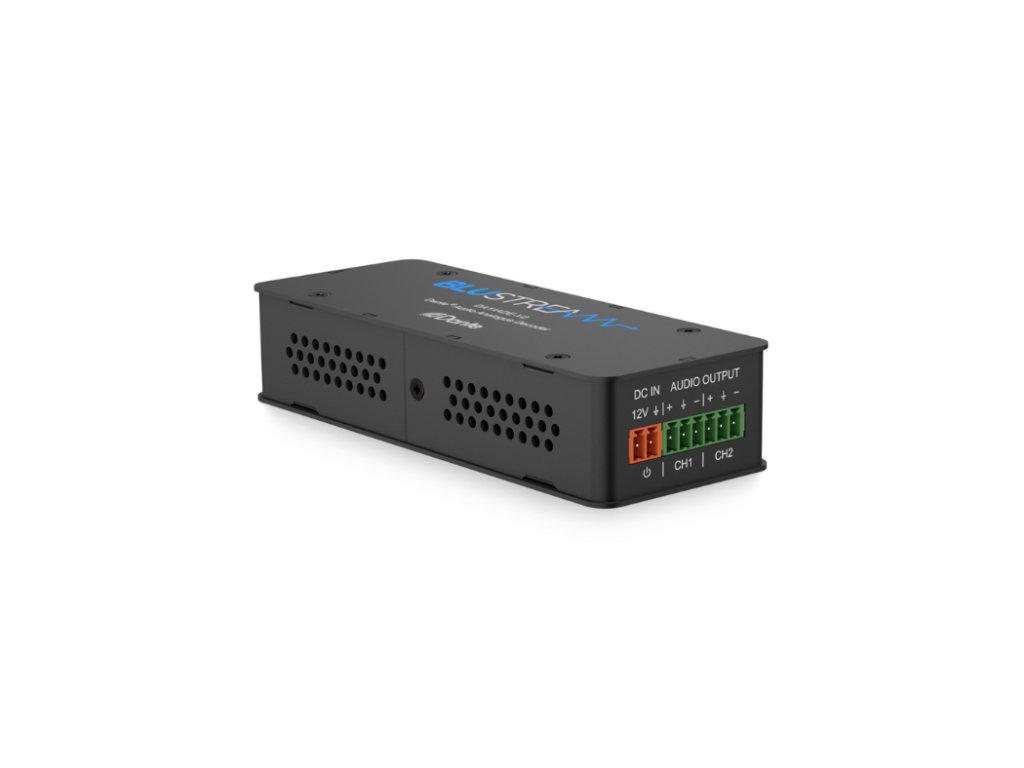 Blustream Dante převodník DA11ADE-V2 Náš převodník DA11ADE-V2 byl navržen pro dekódování dvou digitálních signálů Dante do dvou nesymetrických nebo symetrických analogových audio kanálů. DA11ADE-V2 je zařízení typu plug & play, které je napájeno buď pomocí PoE (Power Over Ethernet) z libovolného síťového přepínače PoE, nebo přes lokální 12V napájecí vstup. DA11ADE-V2 také podporuje přenos zvuku AES67 RTP. Vestavěný modul webového rozhraní lze použít pro konfiguraci a ovládání zařízení. Klíčové vlastnosti: Dekóduje dva digitální signály Dante na dva nesymetrické nebo symetrické analogové audio kanály Podporuje vzorkovací frekvence 44,1, 48, 88,2 a 96 kHz při 16/24/32 bitech Konfigurovatelná latence zařízení Dante (podporuje 2–10 ms konfigurovatelné pomocí Dante Controlleru) Podporuje přenos zvuku AES67 RTP Modul webového rozhraní pro ovládání a konfiguraci zařízení Funkce: PoE třídy 0 802.3af pro napájení produktu z libovolného PoE přepínače Lokální 12V napájecí vstup pro situace, kdy síťový přepínač nepodporuje PoE* Dante je registrovaná ochranná známka společnosti Audinate Pty Ltd * Napájecí zdroj PS121PH se prodává samostatněBuďte první, kdo napíše příspěvek k této položce.