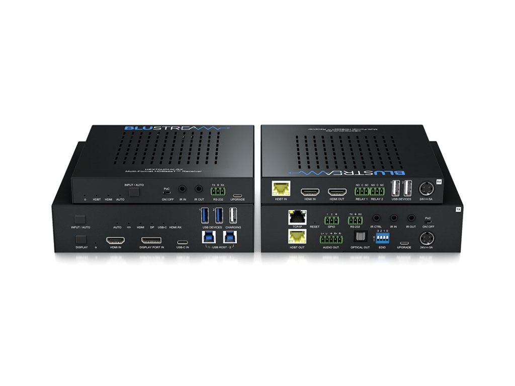 Blustream HEX70HDUK-KIT HEX70HDUK-KIT extender set je HDMI2.0 4K 60Hz 4:4:4 (18Gb/s) HDCP2.2 HDBaseT™ multi-formátové řešení, které používá CSC technologii pro přenos HDMI, USB-C a DisplayPort™ až do vzdálenosti 70 metrů v rozlišení 1080p (40m 4K) přes jeden CAT kabel. HEX70HDUK-KIT poskytuje vylepšené funkce včetně USB 2.0 prodloužení, lokálního HDMI vstupu na HDBaseT™ přijímači pro další vstup, web GUI pro řízení a konfiguraci, automatické ovládání displeje, audio breakout a obousměrné IR. Ovládání je možné přes přední panel, IR, RS-232 a TCP/IP. Vlastnosti: HDBaseT™ technologie nabízí distribuci AV přes jeden CAT kabel Colour Space Conversion (CSC) podporuje HDMI2.0 18Gb/s včetně HDR 1x HDMI, 1x USB-C a 1x DisplayPort™ vstup na HDBaseT™ vysílači s manuálním nebo automatickým výběrem zdroje 1x lokální HDMI vstup na HDBaseT™ přijímači pro připojení zdroje do displeje Podporuje 4K 60Hz 4:4:4 UHD video až do vzdálenosti 40 metrů Prodlužuje HDMI 1080p až do vzdálenosti 70m přes jediný CAT kabel Podporuje všechny známé HDMI audio formáty včetně Dolby Atmos, Dolby TrueHD, Dolby Digital Plus a DTS-HD Master Audio Podporuje USB Typ C v rozlišení až do 4K UHD 60Hz 4:4:4 DP1.2 s 60W schopností nabíjení* Podporuje DisplayPort™ v rozlišení až 4K UHD 60Hz 4:4:4 DP1.2 2x USB Typ A (RX - periferie), 2x USB Typ A (TX - periferie) a 2x USB Typ B (TX - zdroj host), který podporuje rychlost přenosu dat až do 480Mb/s USB Typ A podporuje nabíjení zařízení až do 500mA, pokud je aktivní připojení do zařízení hosta Nezávislý USB Typ A, který podporuje napájení zařízení do 5V 2A Audio breakout na analogové L/R audio a optické digitální (S/PDIF) výstupy zároveň** Obousměrné IR signály Automatické vypnutí/zapnutí displeje umožňuje řízení displeje na HDBaseT™ přijímači přes CEC nebo RS-232 Modul webového rozhraní a konfigurace HEX70HDUK-KIT Ovládání možné pomocí předního panelu, IR, RS-232 a TCP/IP EDID a HDCP management *USB-C video rozlišení je limitováno do 4K 60HZ 4:2:0 pokud je aktivovaná funkce napájení **Analogový audio breakout podporuje pouze 2 kanálové PCMDoplňkové parametry