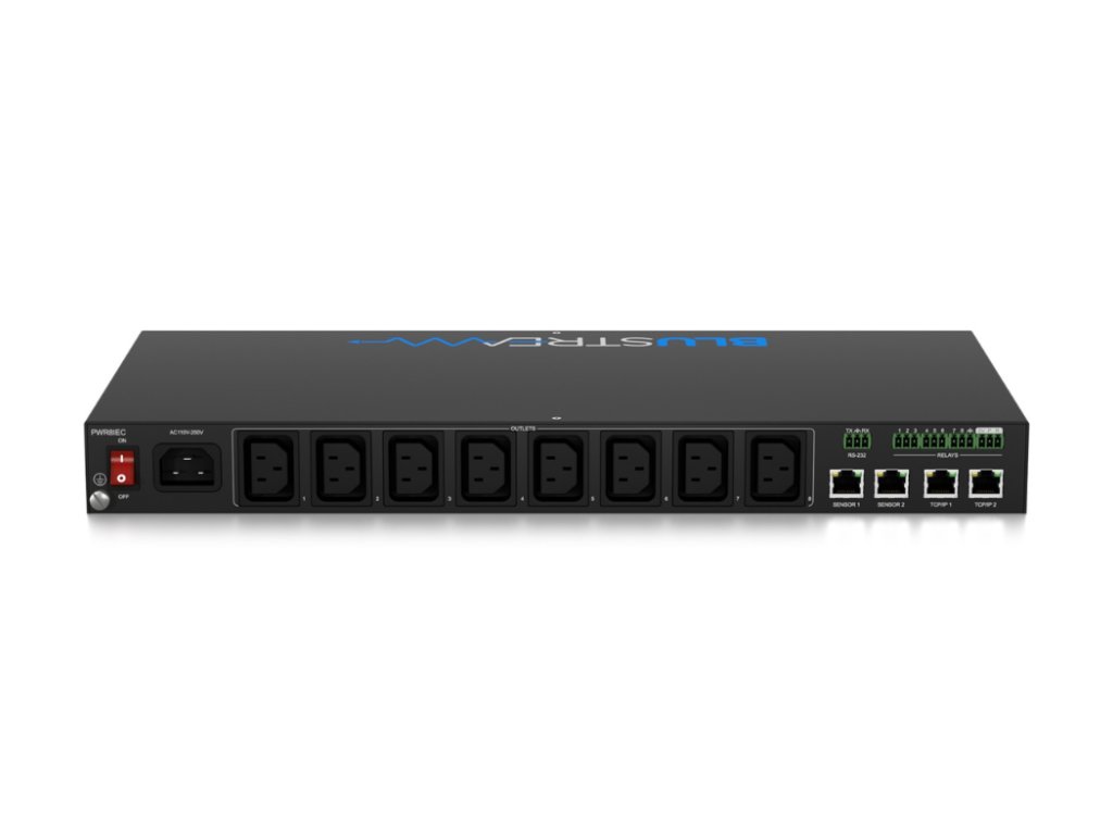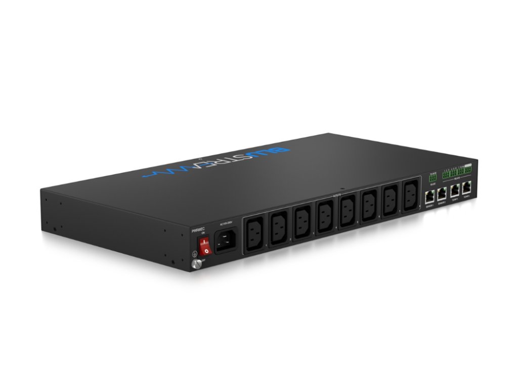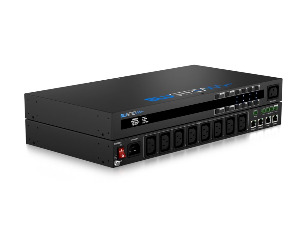 Blustream PWR8IEC napájecí IEC distribuční zařízení s 8 porty Blustream PWR8IEC je inteligentní PDU s měřením a spínáním na úrovni zásuvky. Jednotka je vybavena 1 vstupem IEC C20 pro napájení a 8 výstupními výstupy IEC C13 pro řízené napájení zařízení s vysokou spotřebou energie a jedním neřízeným výstupem. Zařízení podporuje řízení TCP/IP a RS-232 s redundantním portem TCP/IP jako zálohu. Obsahuje tlačítka na předním panelu pro ruční přepínání napájení do jednotlivých zásuvek a jeden přepínač pro celkové napájení systému. Zařízení nabízí 8 reléových výstupů a 2 porty pro senzory, které umožňují automatické ovládání napájení při spuštění z externích řídicích systémů nebo BMS, a vzdálený přístup i monitoring přes webové rozhraní. Vlastnosti: Jeden vstup C20 IEC s 9 výstupy C13 IEC (8× ovladatelných výstupů + 1× trvalý napájený výstup) Zařízení podporují vstup 110-250V (až 16A) Monitorování a měření: napětí, proudu, výkonu a spotřeby energie Ochrana proti přetížení a filtrování rušení Pokročilé funkce správy napájení včetně plánování a sekvencování zapnutí/vypnutí Ovládání přes TCP/IP, RS-232, tlačítka na předním panelu nebo relé Dva síťové porty TCP/IP poskytující nepřetržité síťové služby / přístup s připojením SSL Relé pro automatické spínání přívodu a jednotlivých zásuvek Poskytuje vzdálené monitorování s ověřováním hesel prostřednictvím webového rozhraní Podpora vícero síťových a IoT protokolů 1U design pro integraci do 19" racku - sada pro montáž do racku je součástí baleníDoplňkové parametry