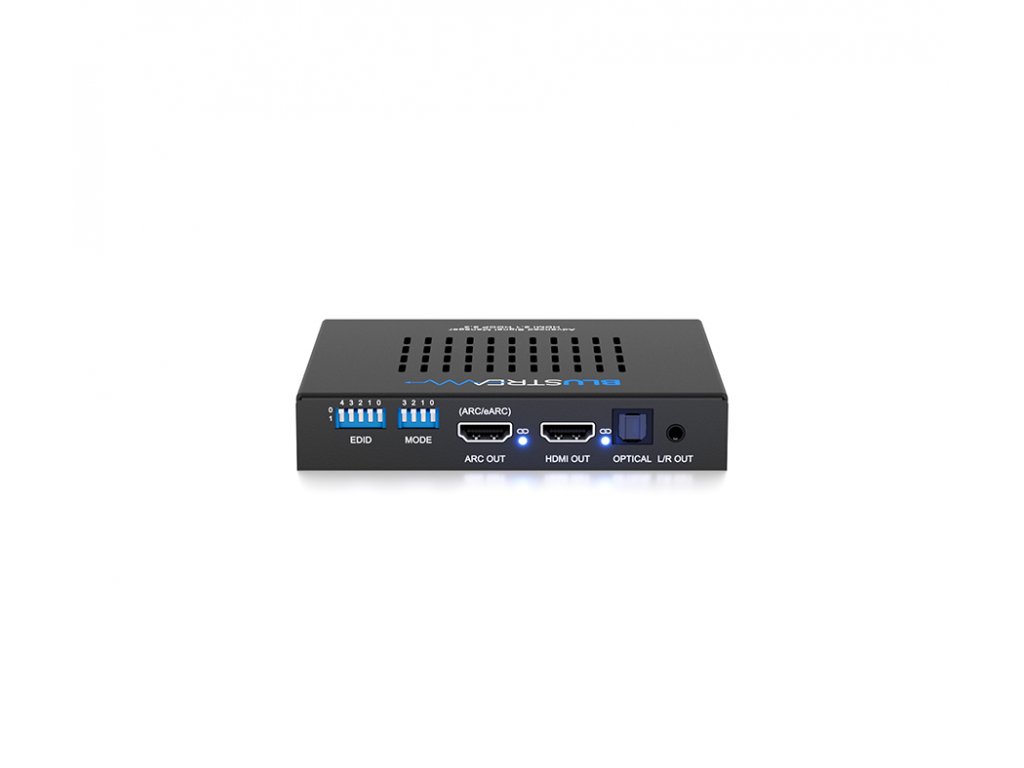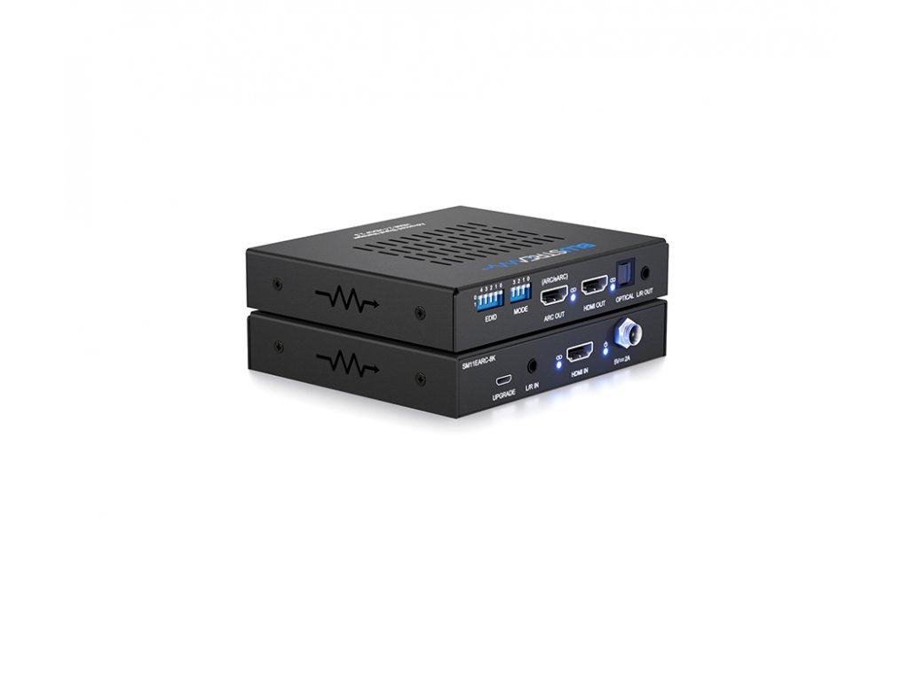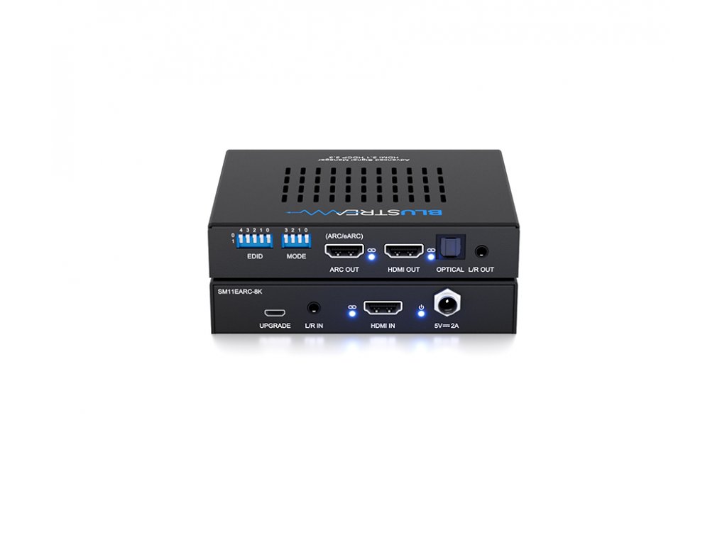 Blustream SM11EARC-8K audio převodník Blustream SM11EARC-8K je HDMI spráce signálu, který byl navržen, aby řešil problémy, které často vznikají při distribuci HDMI signálu, především 4K rozlišení a výše: problémy s HDMI kompatibilitou, HDCP 2.3, clock stretchingem, nastavením správného EDID režimu a navázáním spojení. SM11EARC-8K disponuje nezávislým HDMI audio výstupem pro ARC/eARC audio breakout a embedding/de-embedding audio signálu z HDMI. Toto řešení umožňuje audio breakout do až 7.1 kanálů. SM11EARC-8K podporuje všechna video rozlišení standardu HDMI 2.1 do 40 Gb/s a je kompatibilní s HDCP 2.3. Vlastnosti: Pomáhá vyřešit nejčastější potíže s HDMI EDID, HDCP, kompatibilitou a navázáním spojení Podporuje HDMI 2.1 40 Gb/s, včetně HDR Podporuje až 8K 60Hz YCbCr 4:2:0 10bit, 8K 30Hz RGB/YCbCr 4:4:4 10bit nebo 4K 120Hz RGB/YCbCr 4:4:4 10bit Podporuje ALLM (automatický režim nízké latence) a VRR (variabilní obnovovací frekvence) Podporuje všechny známé HDMI audio formáty včetně Dolby Atmos, Dolby TrueHD, Dolby Digital Plus a DTS-HD Master Lze nakonfigurovat, aby fungoval jako HDMI audio de-embedder nebo audio embedder Nezávislý HDMI audio výstup pro ARC/eARC audio breakout HDMI současný audio breakout na analogové L/R audio a optické digitální výstupy (analogové audio podporuje pouze 2kanálové PCM) Embedduje analogové L/R audio na HDMI výstup Extrahuje audio s připojeným zobrazovačem i bez Podporuje HDCP 2.3, pokročilý EDID managementDoplňkové parametry