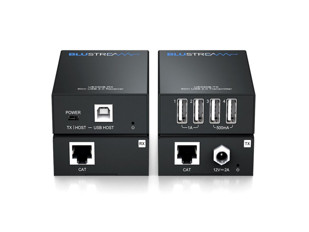 Blustream UEX50B-KIT USB extender kit Blustream UEX50B-KIT přináší USB 2.0 přenos až do 50m přes jediný CAT kabel, umožňuje až 4 x USB periferiím možnost připojení do USB hosta s napájením. Rychlost přenosu dat až do 480Mb/s. Zpětně kompatibilní s USB 1.1 zařízeními. Vlastnosti: Přenáší USB až do vzdálenosti 50m přes jediný CAT kabel Podpora USB 2.0 Kompatibilní i s USB 1.1 zařízeními Rychlost přenosu dat až do 480Mb/s 1 x USB Typ B na vysílači pro připojení host zařízení 4 x USB Typ A hub na přijímači pro připojení periferií USB Typ A porty 1-2 podporují 5V 1A, porty 3-4 podporují 5V 500mA Jednoduchý plug & play, není nutné instalovat žádný ovladač ani zdlouhavá instalace *Délka distribuce signálu závisí na zařízení, USB kabelech a CAT kabelu.Doplňkové parametry
