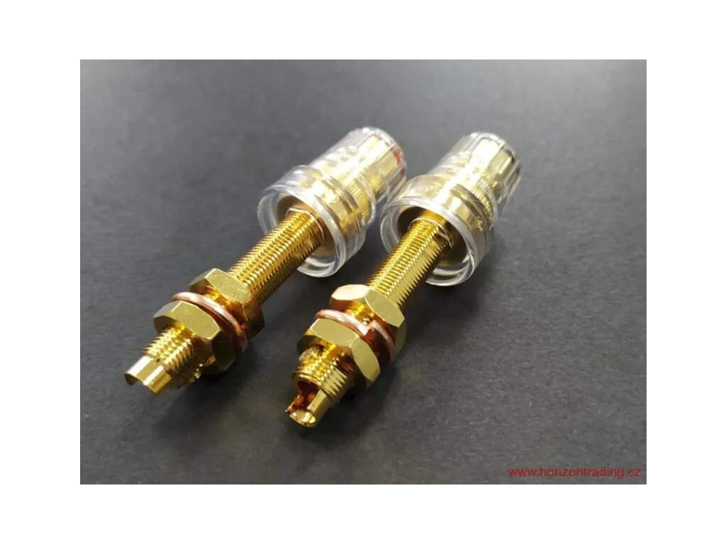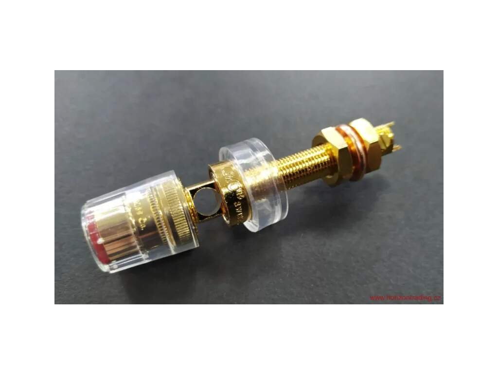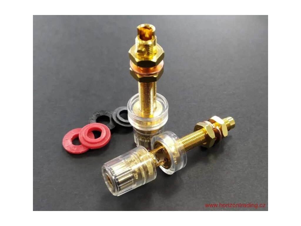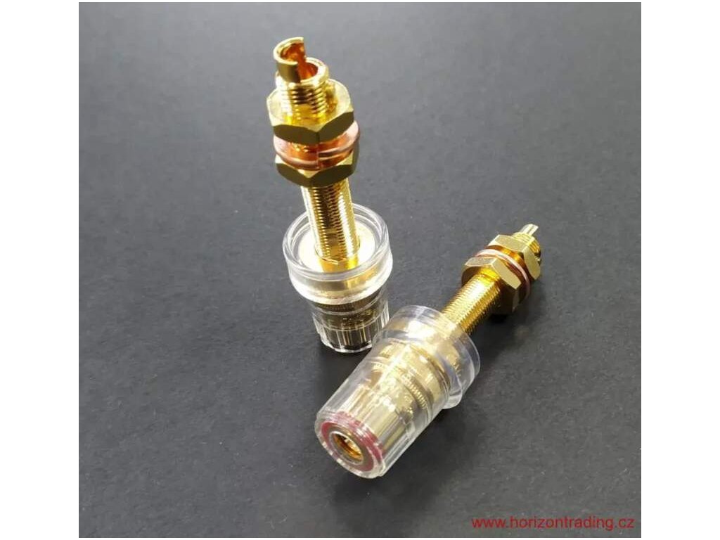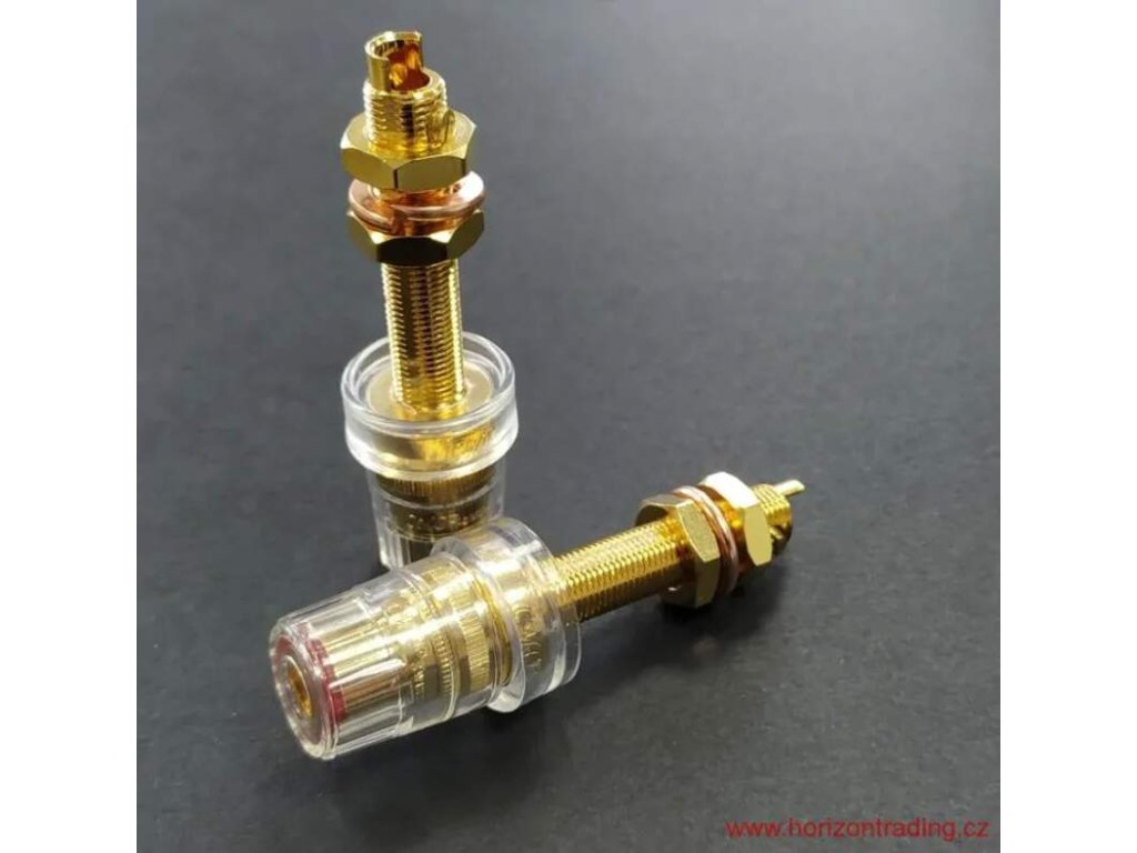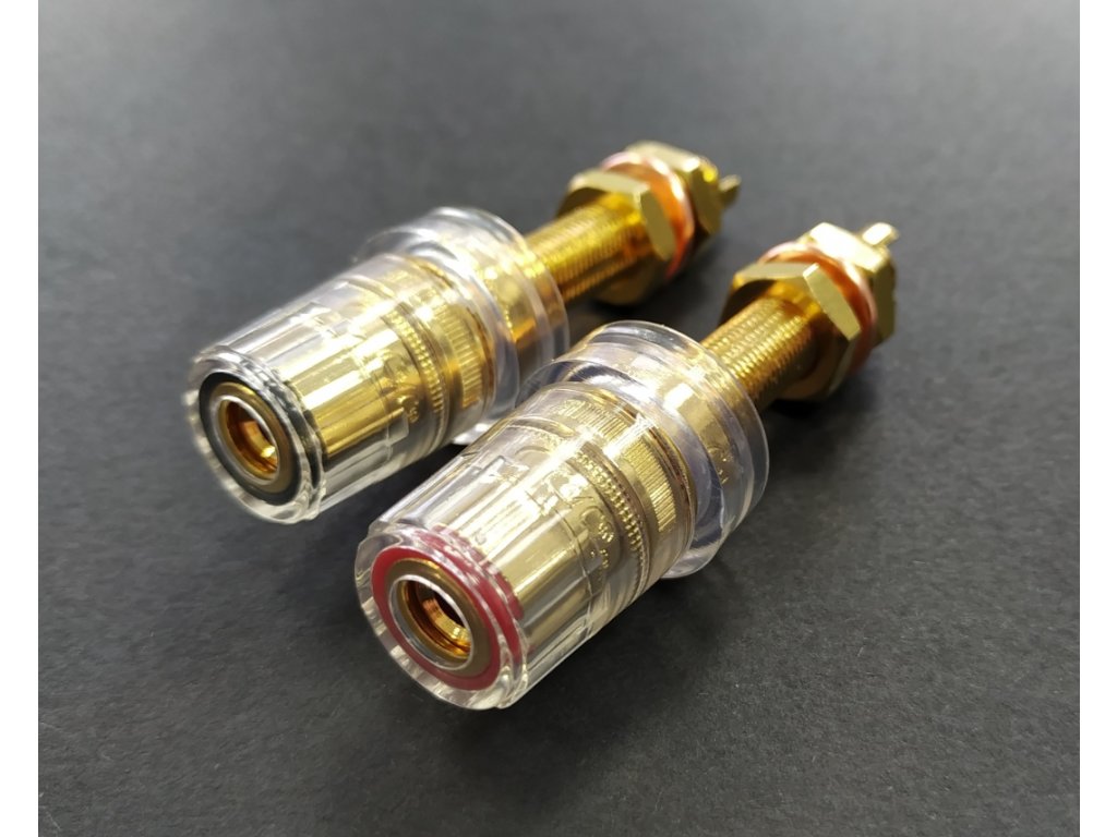 High-End celoizolovaný panelový reproduktorový terminál Copper Gold plated for excellent signal transfer / Non-magnetic direct double Gold Plated CMC® Panelový RCA - cinch konektor vyráběný s největší pečlivostí a kvalitou provedení - Super Cu Nemagnetický - Non-magnetic direct double Gold Plated 24K pozlacení ve dvou vrstvách pro maximálně čistý přenos signálu / 5~6µIN 24K přímé pozlacení celého těla konektoru / DIRECT GOLD PLATED Technology Pozlacený zamezuje jakékoliv korozi Nízký a konstantní přechodový odpor Balení: 1 pár barevně rozlišených konektorů / 2 kusy / Připojení vodiče: pájením nebo mechanicky Izolace z polykarbonátu (PC) Super masivní a kvalitní provedení s největší pečlivostí a kvalitou provedení Určeno pro průměry vodiče: 4-5mm Celková délka konektoru: 62 mm ± 0,2 mm Montážní otvor: 12 mm ± 0,5 mm Maximální použitelná tloušťka panelu: 24 mm Barevné rozlišení Cena uvedena za jeden párDoplňkové parametry