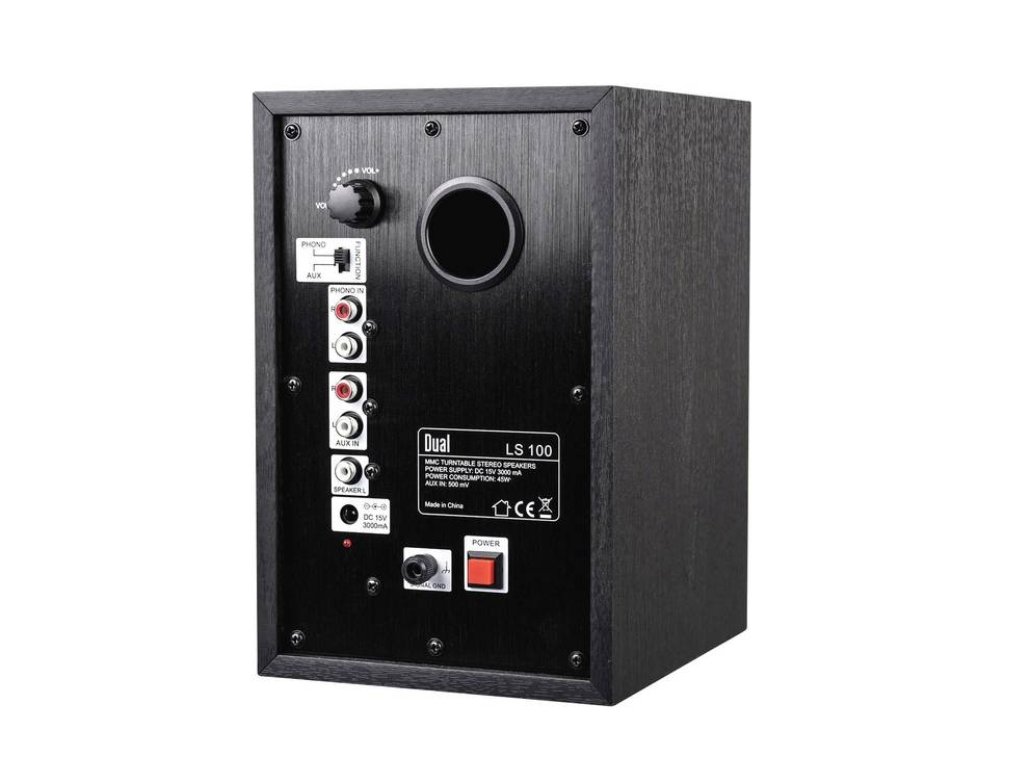 Dual DT-230 BT Plně automatický gramofonový přístroj v midi rozměru s Bluetooth aptX. Oceníte na něm minimalistické zpracování i automatické zavedení raménka pro pohodlnější manipulaci a bezdrátový přenos díky systému Bluetooth aptX. Vlastnosti: Vestavěný vypínatelný Phono předzesilovač Motor s DC servo-pohonemAutomatické zavedení ramena do výchozí polohy pro přehráváníFunkce Auto StopVysílač Bluetooth aptX pro kvalitní bezdrátový přenos hudby do systémů podporujících technologii Bluetooth s dosahem až 10 metrůPřesný a masivní hliníkový talíř eliminující vibraceDruh pohonu: řemínkový Dynamicky vyvážené přímé raménkoMM přenoska: Audio-Technica Technické parametry: Počet otáček: 33 1/3, 45 ot./minProvozní napětí: 220 V - 240 VRozměry (ŠxVxH): 350 x 95 x 348 mmHmotnost: 2,7 kgEAN: 4260136675534 Barevné provedení: černá + 2-pásmové aktivní reprosoustavy DUAL LS100 s PHONO vstupem za atraktivní cenu 2-pásmová, bassreflexová ozvučnice z MDF, aktivní s odnímatelným průzvučným rámečkem4“ basový reproduktor s kevlarovou membránou a 1“ kalotovým výškovým reproduktoremKvalitní zvuk a špičkové zpracování Vestavěný stereo zesilovač Vstupní citlivost: 800 mVOdstup S/N > 70 dB / AVýstup na druhou (pasivní) reprosoustavuOddělený napájecí zdroj Technická data: 1x 26 mm výškový reproduktor1x 101 mm středobasový reproduktor s kevlarovou membránouVýkon: 20 WMax. výkon: 50 WFrekvenční rozsah: 70 - 20.000 Hz (+/- 3dB)Vstupy: AUX in, PHONO inRozměry (ŠxVxH): 150 x 230 x 190 mm Barevné provedení: černáDoplňkové parametry