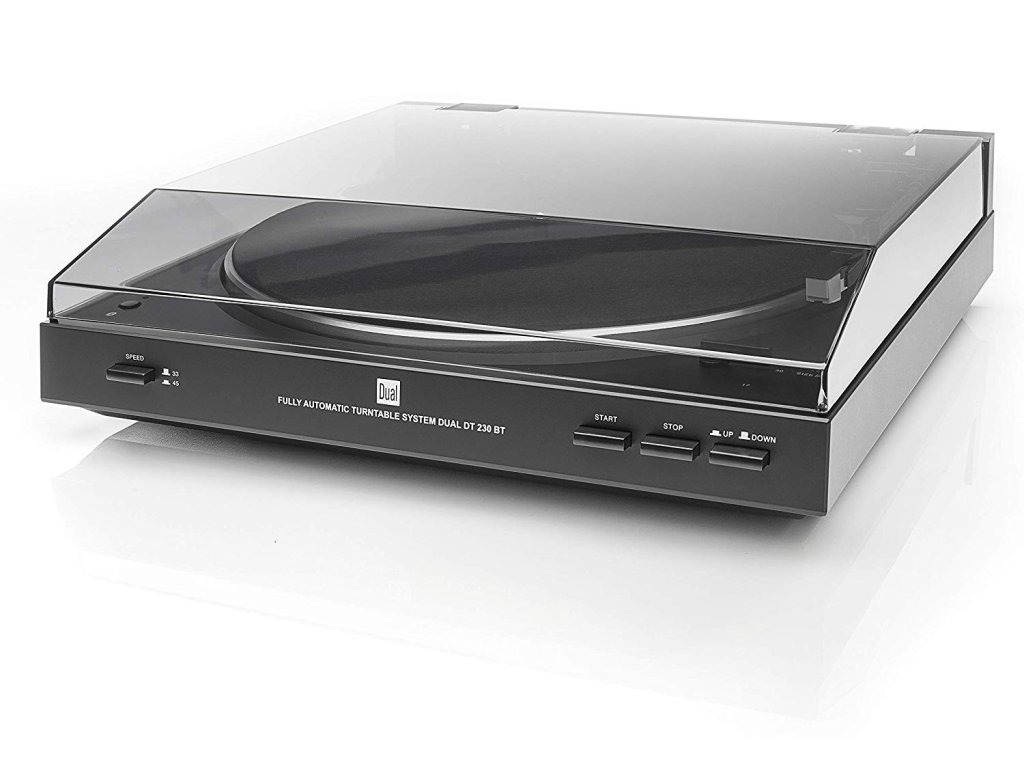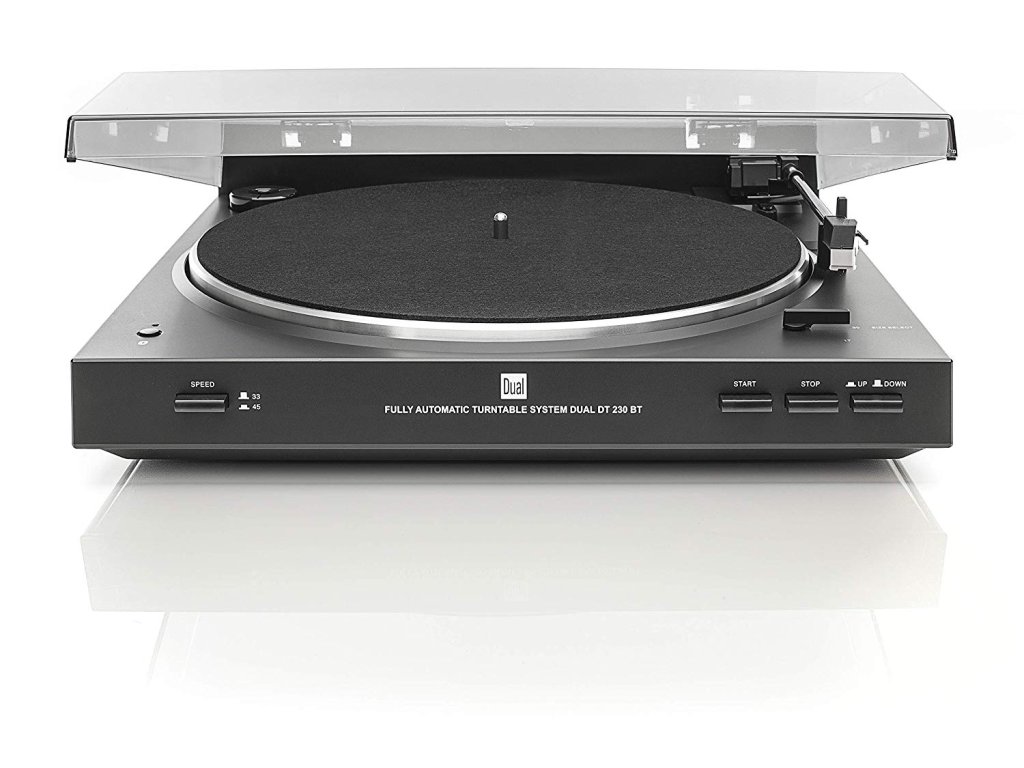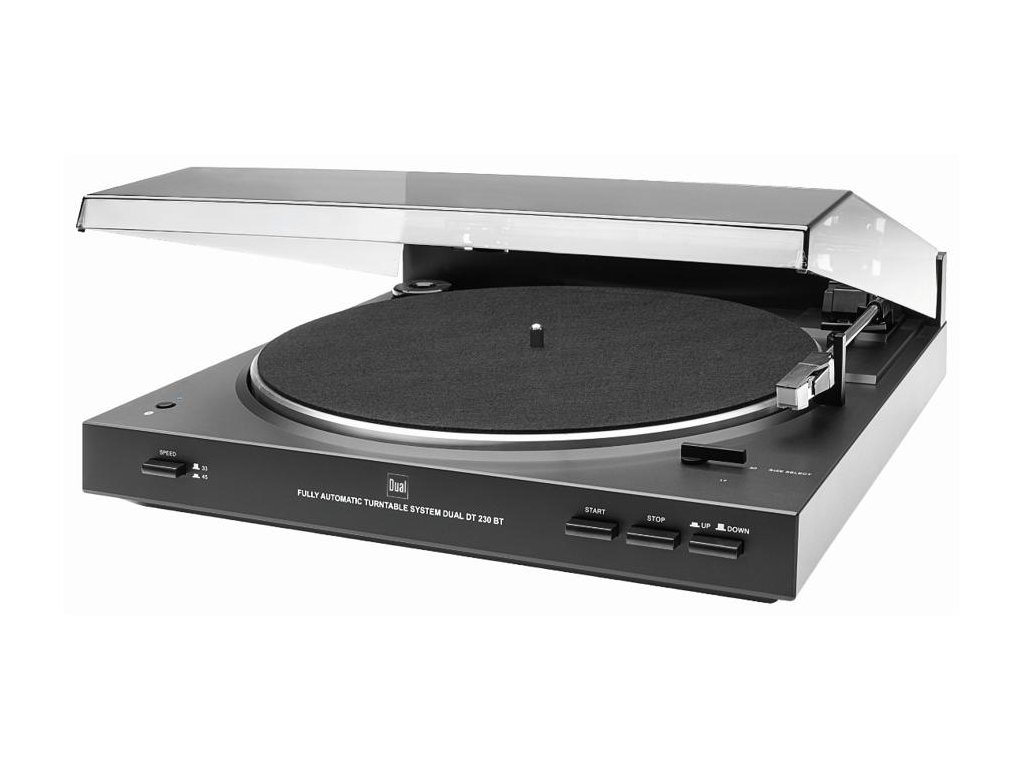 Plně automatický gramofon s MM přenoskou Audio-Technica a Bluetooth i za takto nízkou cenu !! Plně automatický gramofonový přístroj v midi rozměru s Bluetooth aptX. Všechny aktivity společnosti DUAL se zakládají na přísných výběrech materiálů, komponentů, na precizním zpracování a zkompletování, podléhají testům a prověřováním. Finální výstupní kontrolou je poté hodnocení samotnými koncovými uživateli, a dle jejich spokojenosti je možné se poměrně dobře orientovat v sekci gramofonového zboží. 230 disponuje plně automatickým raménkem, nastaveným předzesilovačem s přepínačem Phono/Line a výstupy RCA, dvěma rychlostmi (33 a 1/3 RPM, 45 RPM) a kvalitním hliníkovým talířem. Raménko je osazeno jemným mechanismem, pro jeho citlivé zvedání a pokládání. Samozřejmě žádná produkce by se neobešla bez přenosky s dvojitým magnetem - Integral Dual Magnet, která má vyměnitelný diamantový hrot. Neoddělitelným a očekávaným příslušenstvím je také kabeláž, důležitá k propojení gramofonu se zesilovačem. 230 perfektně hraje, je plně automatizovaná. Ovládat ho lze i ručně. Je kompaktní, vzhledný, disponuje předzesilovačem a slušnou cenou. Specifikace: Jednoduchá obsluha i funkčnostVestavěný přepínatelný předzesilovač Phono / LineBluetoothAutomatické zavedení ramena do výchozí polohy Dual DT-230 BT:Oceníte na něm minimalistické zpracování i automatické zavedení raménka pro pohodlnější manipulaci a bezdrátový přenos díky systému Bluetooth aptX. Vlastnosti: Vestavěný vypínatelný Phono předzesilovač Motor s DC servo-pohonemAutomatické zavedení ramena do výchozí polohy pro přehráváníFunkce Auto StopVysílač Bluetooth aptX pro kvalitní bezdrátový přenos hudby do systémů podporujících technologii Bluetooth s dosahem až 10 metrůPřesný a masivní hliníkový talíř eliminující vibraceDruh pohonu: řemínkový Dynamicky vyvážené přímé raménkoMM přenoska: Audio-Technica Technické parametry: Počet otáček: 33 1/3, 45 ot./minProvozní napětí: 220 V - 240 VRozměry (ŠxVxH): 350 x 95 x 348 mmHmotnost: 2,7 kgEAN: 4260136675534 Barevné provedení: černáDoplňkové parametry