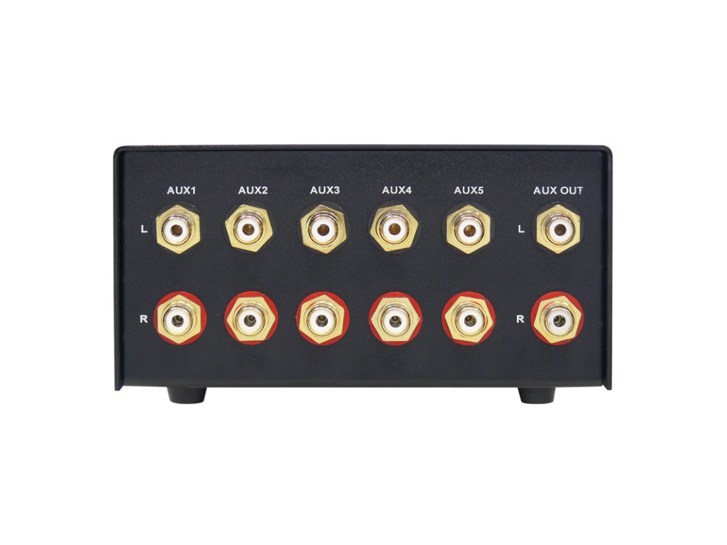 Máte hodně komponentů a všechny vstupy již obsazené? Žádný problém... Dynavox AUX-S vám to vyřeší. Nabízí 5 přepínatelných vstupů do jednoho výstupu. Zařízení si stačí předřadit před stávající zesilovač, receiver, AV receiver.... + 5 vstupů AUX+ 1 výstup OUT+ vysoce kvalitní přepínač - s velmi nízkým kontaktním odporem+ 4mm silný přední panel+ celokovové provedení+ pozlacené 24K zlatem RCA konektory+ rozměry: cca 145 x 210 x 75 mm Barevné provedení: černé, stříbrnéDoplňkové parametry