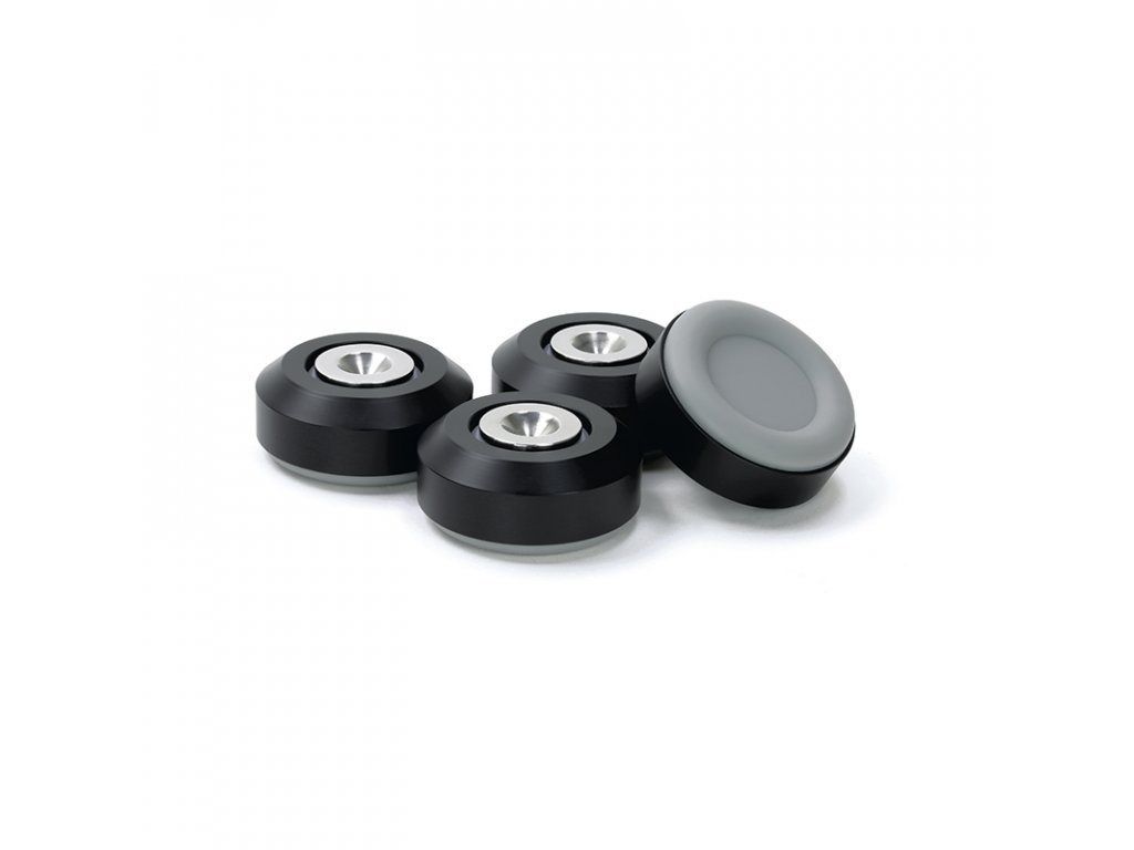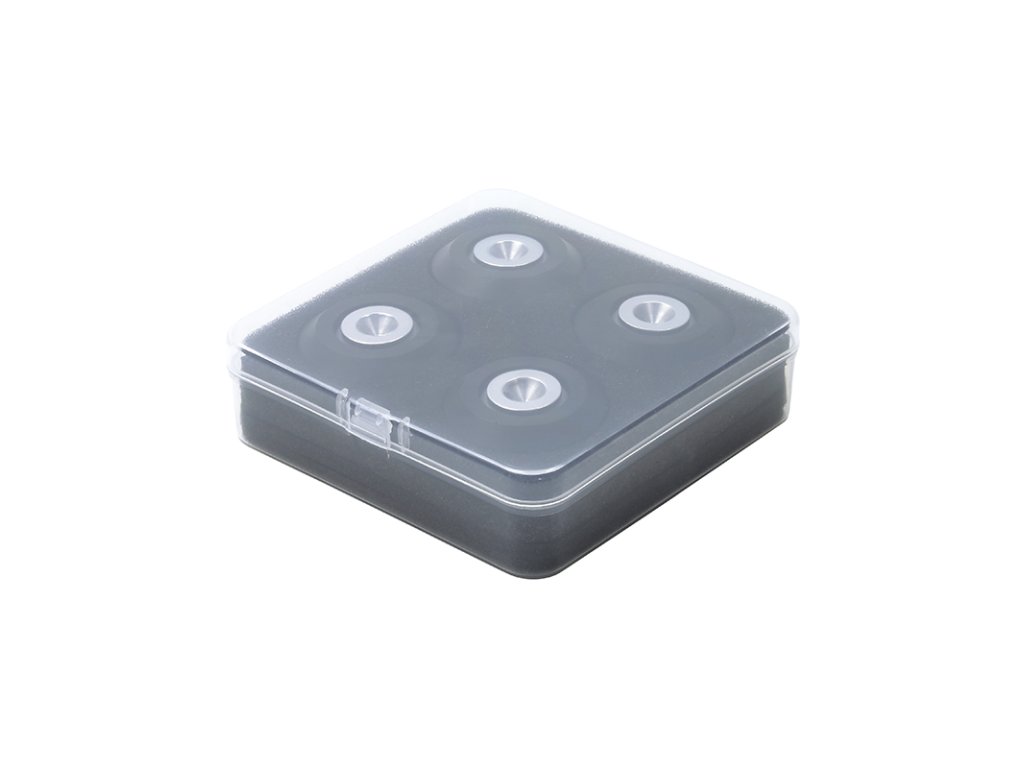 Sada 4 vysoce kvalitních dvojitých absorbérů Nové špičkové duální absorbéry Dynavox zajišťují bezpečné oddělení nebo útlum vašich zvukových komponent, reproboxů a stojanů. Zajišťují pozitivní rezonanční chování komponentů. Duální absorbéry se skládají ze 2 pevných silikonových kaučuků, z nichž jeden tlumí nosnou plochu (a současně chrání podlahu nebo stojan) a druhý je umístěn kolem podložky / držáku zařízení z nerezové oceli. Držák je chráněn obvodovým černě eloxovaným hliníkovým kroužkem. Díky stabilnímu zpracování a směsi materiálů působí absorbéry také dokonalým vizuálním dojmem. Každý z nich unese až 26 kg. Rozměry: průměr x výška 46 x 20 mm Hmotnost 50 gDoplňkové parametry