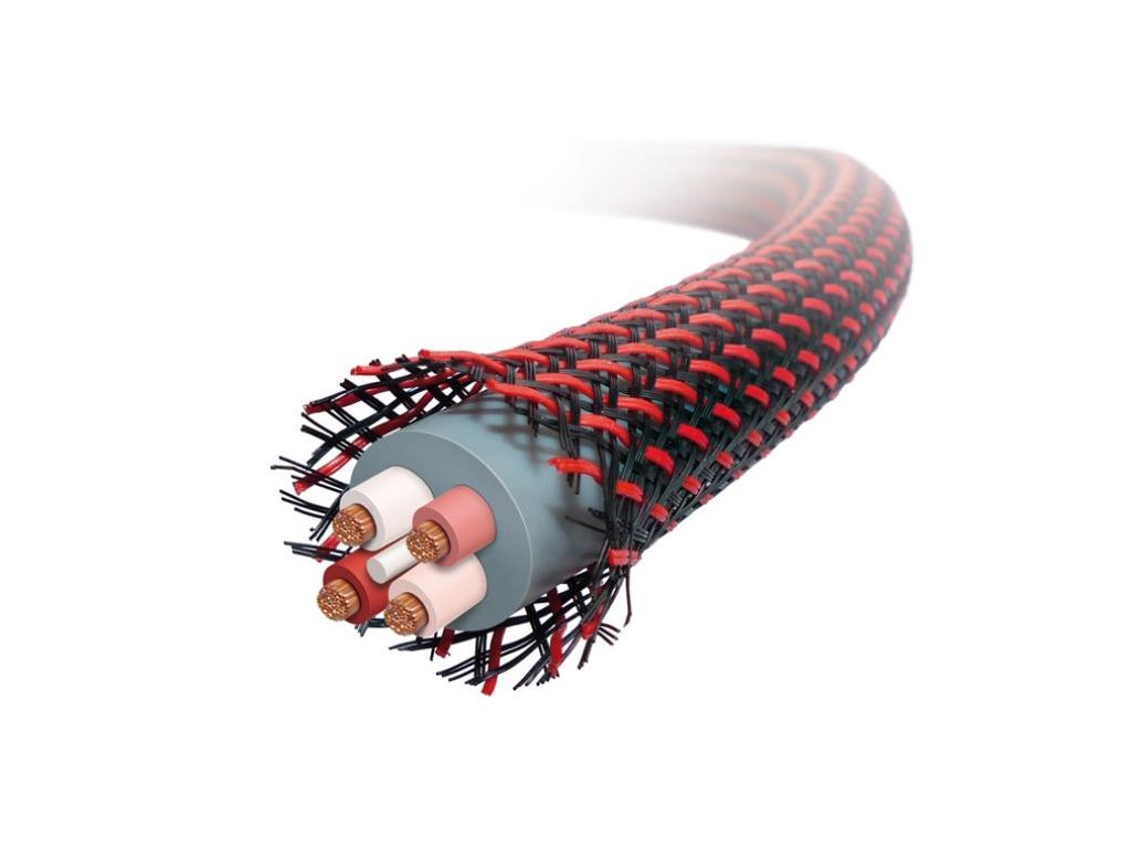Kvalitní reproduktorový kabel 4x2.5mm v metráži včetně opletu Reproduktorový kabel Dynavox Premium 4 x 2,5 mm2 pro nejvyšší rozlišení Vnitřní vodič 4N OFC (99,99% bezkyslíkaté mědi), struktura vodičů každý 50 x 0,25 mm Celkový průměr kabelu přibližně 13 mm Průřez drátu 2,5 mm2 / 4x 2,5mm Nylonový oplet černá / červená pro ochranu před mechanickými vibracemi PE izolace s přídavným PE nosným prvkem Cena za 1 běžný metrDoplňkové parametry