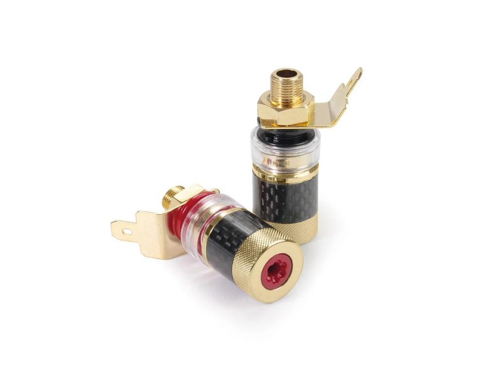 Masivní, pozlacená banánová zásuvka v profesionální verzi. Pozlacené vysoce kvalitní zásuvky vyrobené z mosazi zaručují velmi nízký přenosový odpor. 24K pozlacení Příčné připojení pro kabelové svazky do průměru 5 mm. Vstupní otvor pro přímé připojení reproduktorového banánku. Manžeta z kovu z uhlíkovým pláštěm. Rozměry: cca 48 x 18 mm Instalační průměr závitu cca 8,8 mm s délkou cca 17,5 mm / maticí a izolační podložkou Sada jeden pár konektorů: 1 x červená, 1 x černá, v blistrovém baleníDoplňkové parametry
