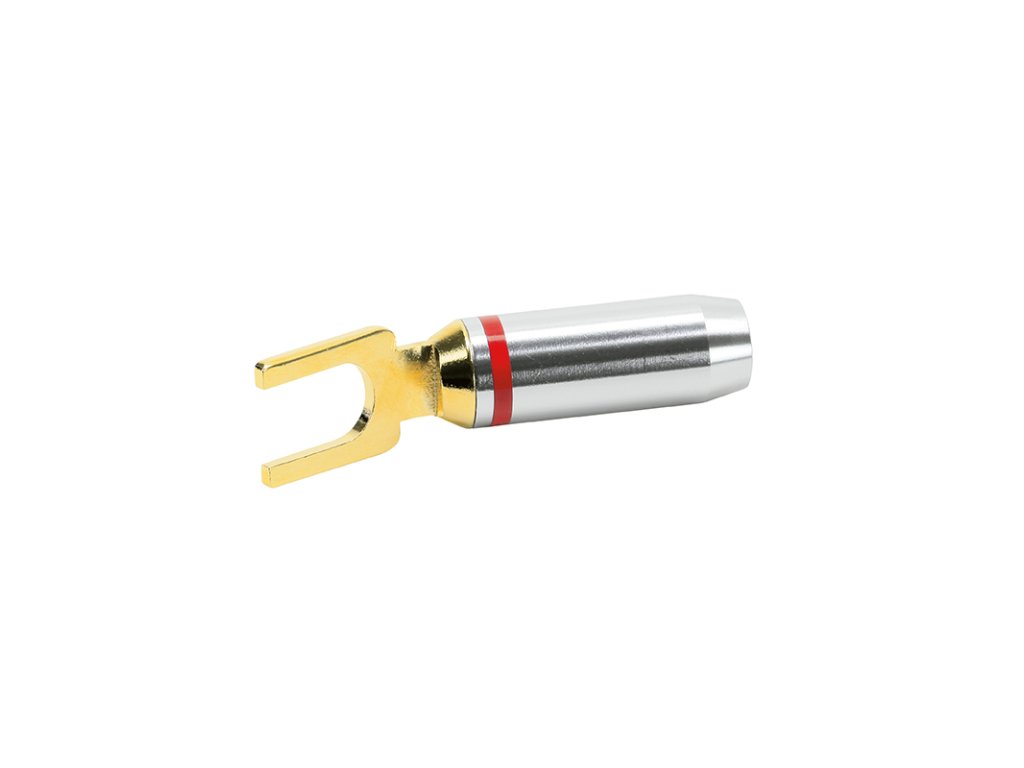 Reproduktorový konektor - vidlice pro připojení reprosoustav Špičkový kabelový kabelový konektor pro optimální a trvalý kontakt. Hliníkové pouzdro Pozlacený 24K zlatem Kabel do průměru 6 mm Šroubovatelný (stavěcí šroub) nebo pájitelný Celková délka 54 mm Otvor vidlice 8,5 mm Hloubka vidlice 11 mm Cena za jeden pár barevně rozlišených reproduktorůDoplňkové parametry