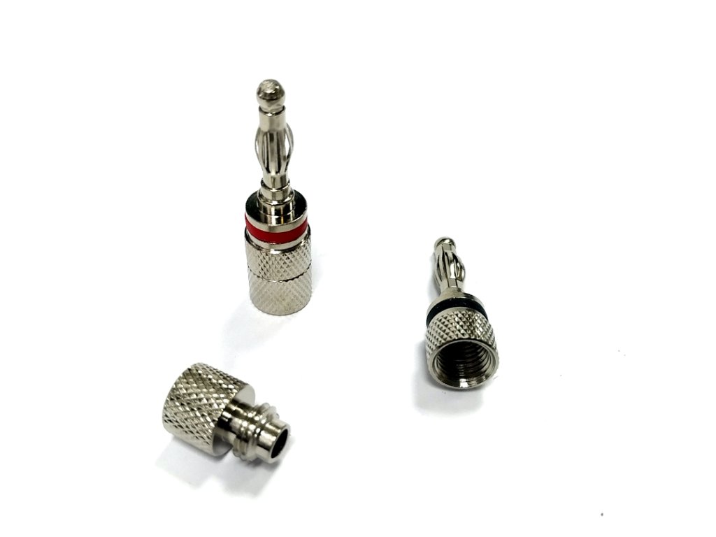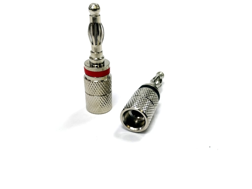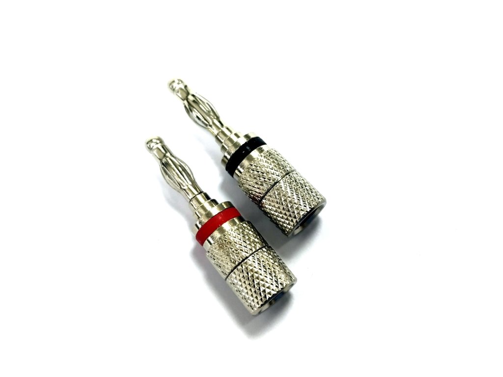 Sada reproduktorových banánků pro připojení reprosoustav Výhodou je snadné uchycení vodiče Kvalitní celokovové provedení Vstup pro 4-5mm silný kabel Barevně rozlišeno: červená / černá Cena za pár (1+1ks)Doplňkové parametry