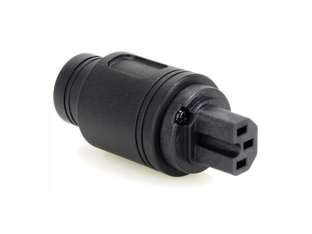 High End síťový konektor Specifikace: Tělo konektoru: 30% skleněné vlákno a 66% nylon s uhlíkovými částicemi, které absorbují vibrace a rezonance Upínací šrouby: (Philips PH2) Kvalitní kabelová svorka zvyšuje přilnavost a snižuje mechanicky a elektricky indukované zkreslení Pozlacení 24k zlatem Maximální průřez vodičů: 15 mm² (4,5 mm ) Průměr kabelu: od 13,5 mm do 16,5 mm Napětí: 16A / 250V Celková délka: 95 mm Průměr: 42 mm Hmotnost: 76gDoplňkové parametry