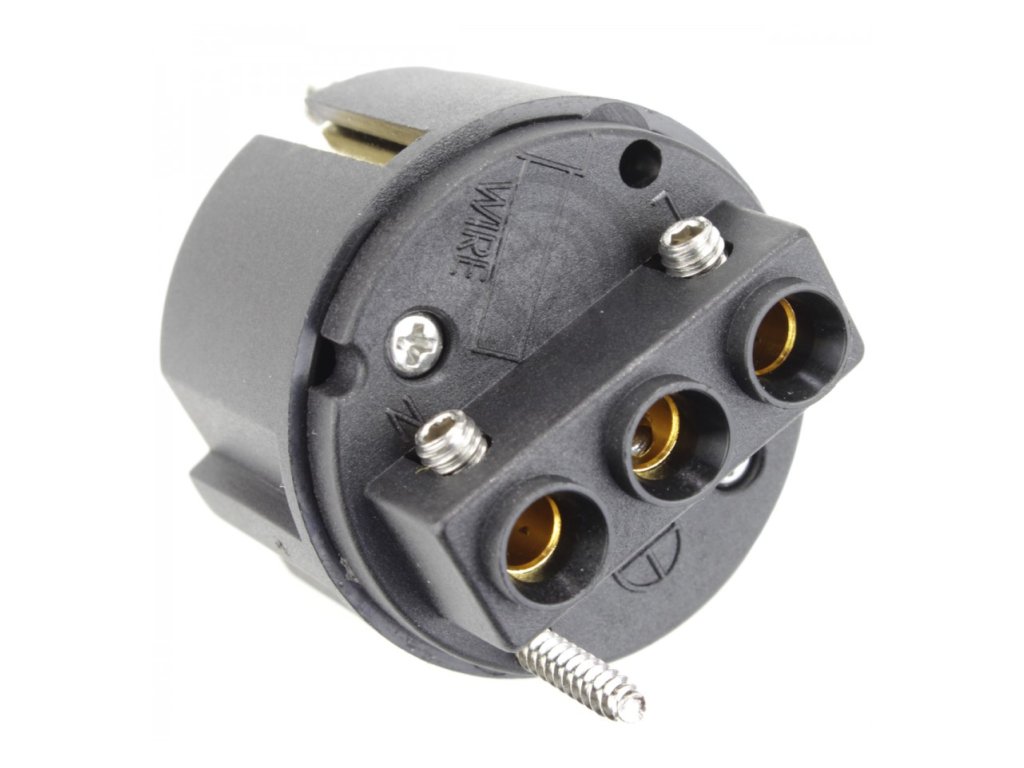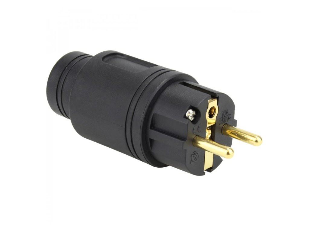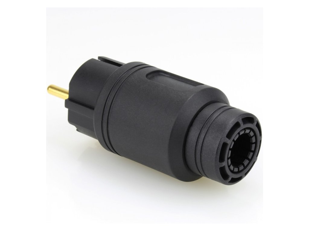 Robusní High End síťový konektor s postříbřenými / pozlacenými kontakty. Tyto Hi-Fi napájecí konektory, které byly vyvinuty ve Francii pro použití s nejsofistikovanějšími silovými kabely na trhu. Specifikace: Tělo konektoru: 30% skleněné vlákno a 66% nylon s uhlíkovými částicemi, které absorbují vibrace a rezonance - Fiberglass / Nylon 4mm silné tělo konektoru Upínací šrouby: (Philips PH2) z nerezové oceli - Stainless steel Kvalitní kabelová svorka zvyšuje přilnavost a snižuje mechanicky a elektricky indukované zkreslení Postříbření a pozlacení 24k zlatem - Hybrid plated: Silver/ Gold 24k Maximální průřez vodičů: 15 mm² (4,5 mm ) Průměr kabelu: od 13,5 mm do 16,5 mm Napětí: 16A / 250V Celková délka: 1037mm Průměr: 42 mm Hmotnost: 92gDoplňkové parametry