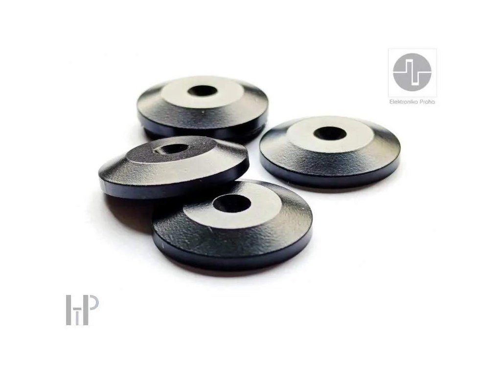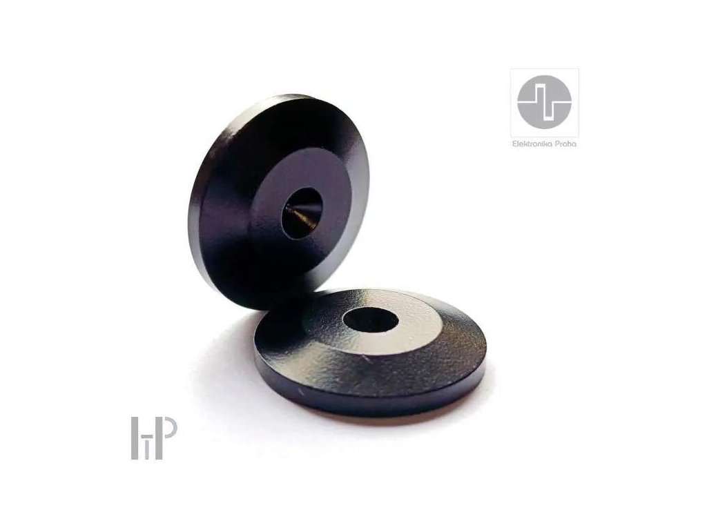 Universální podložky pod odhmotňovací hroty reprosoustav a audio komponentů / 25mm / v černém provedení Universální podložky pod odhmotňovací hroty reprosoustav a audio komponentů / 25mm / : CD přehrávače, gramofony, zesilovače, reprosoustavy ... Průměr: 25mm Výška: 4.2mm Bezkonkurenční cena Kvalitní a přesné CNC zpracování Sada obsahuje 4 kusy podložek / 4 kusy samolepících ochranných podložek pro dodatečnou ochranu podlahy Made in EUDoplňkové parametry