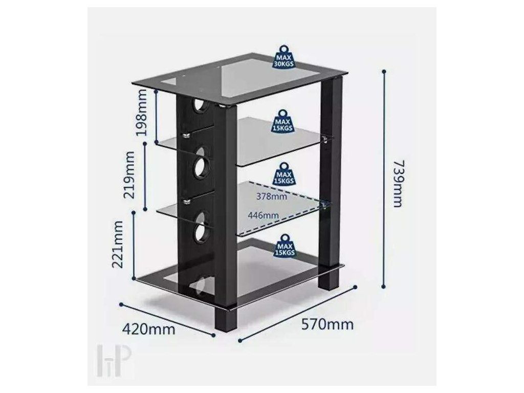 Elegantní, precizně zpracovaný stolek pro audio komponenty v černém lesklém provedení - NOVINKA 2024. Hifi stolek je charakterizován praktickou konstrukcí, velmi jednoduchou a rychlou montáží. Vyroben je z kvalitnějších materiálů, čtyři police z černého tvrzeného skla (8/5/5/5 mm) a kulaté nohy, propůjčují stolku moderní design s jednoduchým umístěním do každého interiéru. Sada obsahuje vše potřebné k montáži a obrazové pokyny k instalaci. Bezpečnostní tvrzené sklo s hladkými leštěnými okraji Celohliníkové lesklé černé nohy Jednoduchá a rychlá montáž během 25 minut 4 police / 2 výškově nastavitelné Skryté kabely Nosnost / sklo: 30kg / 8mm, 15kg / 5mm, 15kg / 5mm, 15kg / 5mm Rozměry: 739 x 570 x 420 mm Hmotnost: 16.5g / 20.5kg s obalem Barevné provedení: černé nohy / černá sklaDoplňkové parametry