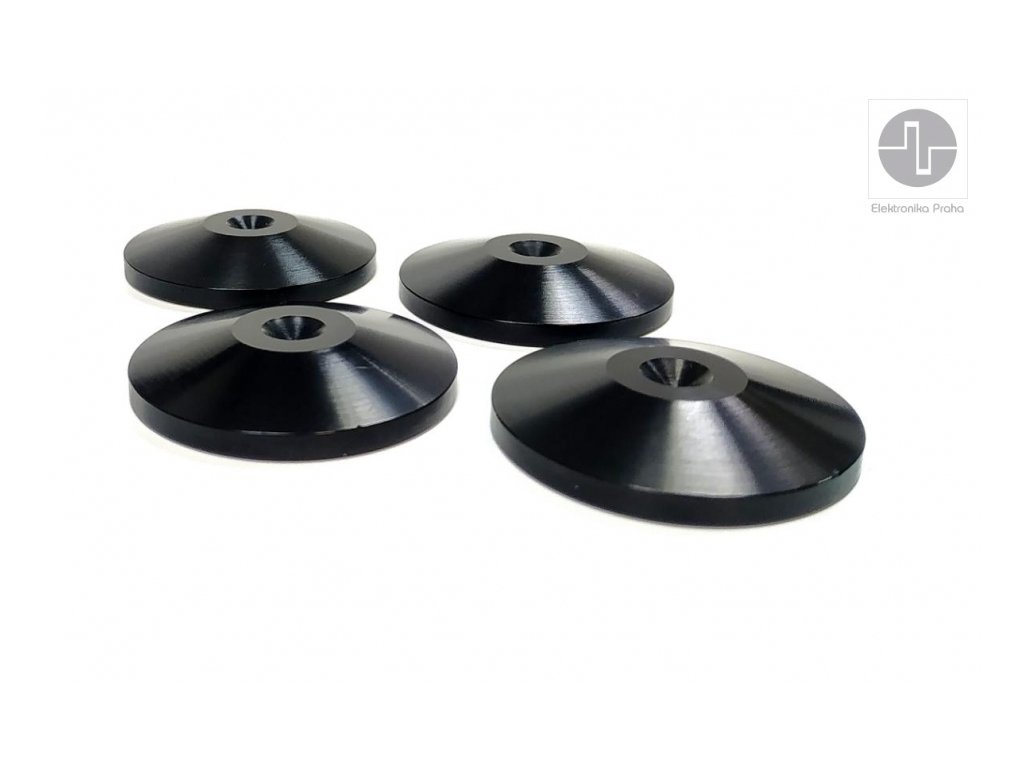 Značka Elektronika Praha je s vámi od roku 1969 a po celou dobu ji reprezentuje typické, elegantní i nadčasové logo, které vzniklo díky kreativitě původního člena hospodářského sdružení, jenž upravil na osciloskopu vykreslený průběh nejrychlejšího signálu do vyobrazené podoby evokující zároveň mechanickou kliku. Logo tak nese informaci, že jde o elektronické produkty vyráběné s vysokým podílem ruční práce. Díky tomu lze říci: máte kliku, že při tvorbě produktů aplikujme typickou českou chytrost a šikovnost, již 55 let máte kliku, že většinu produktů vyrábíme v EU máte kliku, že produkty poskytují mimořádný poměr užitné hodnoty k ceně, možná ten nejlepší na trhu Universální podložky pod odhmotňovací hroty reprosoustav a audio komponentů / 20mm Universální podložky pod odhmotňovací hroty reprosoustav a audio komponentů / 20mm / Alu: CD přehrávače, gramofony, zesilovače, reprosoustavy ... Průměr: 40mm Výška: 7.5mm Kvalitní a přesné CNC zpracování Sada obsahuje 4 kusy Barevné provedení: černý elox Made in EUDoplňkové parametry