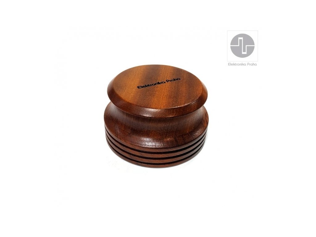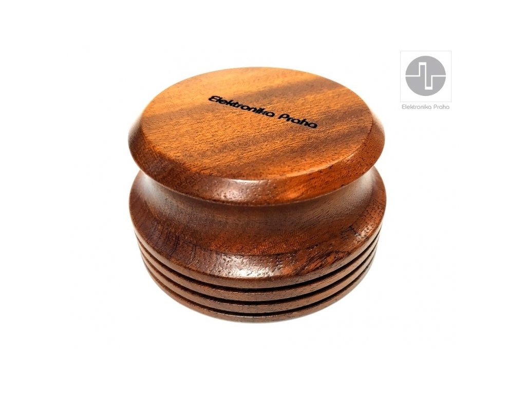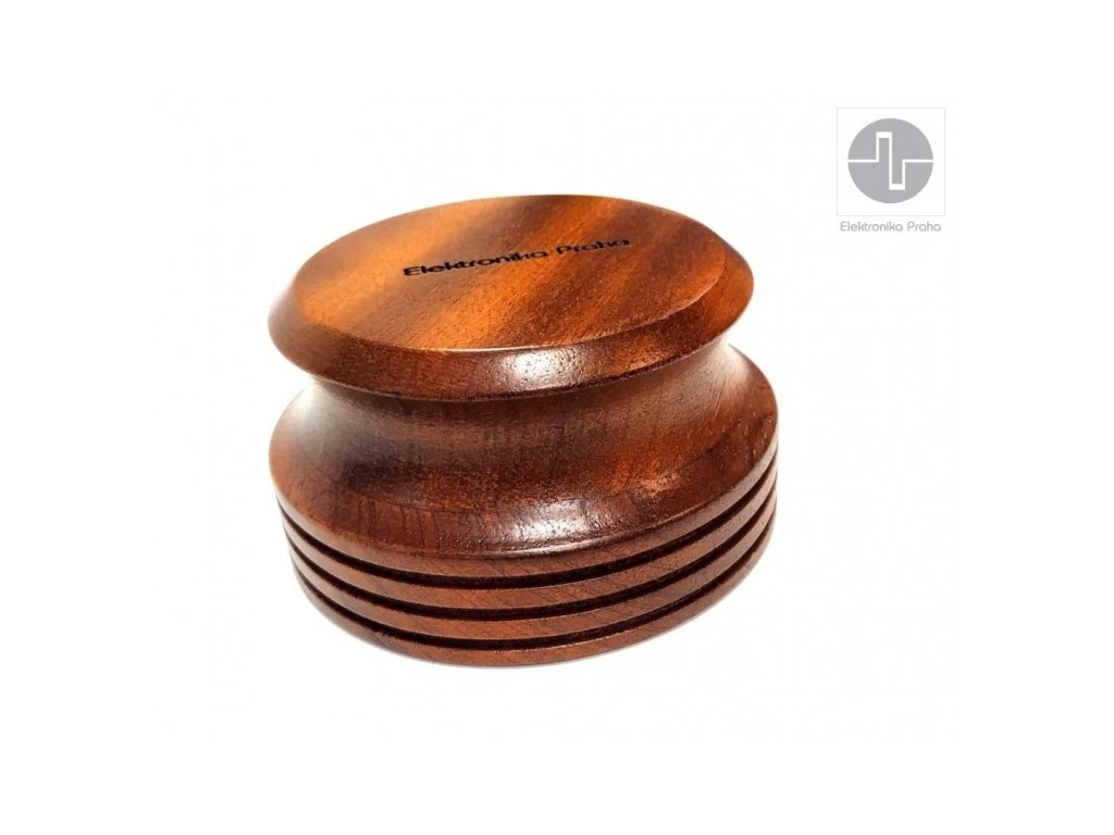 Značka Elektronika Praha je s vámi od roku 1969 a po celou dobu ji reprezentuje typické, elegantní i nadčasové logo, které vzniklo díky kreativitě původního člena hospodářského sdružení, jenž upravil na osciloskopu vykreslený průběh nejrychlejšího signálu do vyobrazené podoby evokující zároveň mechanickou kliku. Logo tak nese informaci, že jde o elektronické produkty vyráběné s vysokým podílem ruční práce. Díky tomu lze říci: máte kliku, že při tvorbě produktů aplikujme typickou českou chytrost a šikovnost, již 55 let máte kliku, že většinu produktů vyrábíme v EU máte kliku, že produkty poskytují mimořádný poměr užitné hodnoty k ceně, možná ten nejlepší na trhu Universální podložky pod odhmotňovací hroty reprosoustav a audio komponentů / 20mm Universální středové přítlačné závaží z vysoce kvalitního masivního a tvrdého dřeva - Sapelli Stabilizátor rovnoměrně rozloží váhu na desku a tím zvýší kontaktní tlak desky na talíř gramofonového přístroje. Tímto způsobem lze lépe snímat zejména problematické - zvlněné desky. Vhodné pro všechny gramofony, opěrná strana opatřena plstí. Průměr: 80mm Výška: 40mm Hmotnost: 300g Kvalitní a přesné CNC zpracování Cena za jeden kus Made in EU EP-51 Dřevo SAPELLI je dováženo ze střední až rovníkové Afriky. Má dobrou stabilitu s hustotou okolo 800kg/m3. Vzhled této dřeviny působí, jako by měla šrafování, které bylo způsobené jemnými a krátkými tahy. Plocha působí elegantně a esteticky.Doplňkové parametry