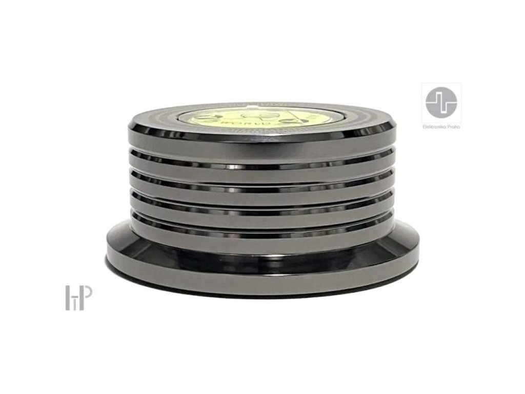Značka Elektronika Praha je s vámi od roku 1969 a po celou dobu ji reprezentuje typické, elegantní i nadčasové logo, které vzniklo díky kreativitě původního člena hospodářského sdružení, jenž upravil na osciloskopu vykreslený průběh nejrychlejšího signálu do vyobrazené podoby evokující zároveň mechanickou kliku. Logo tak nese informaci, že jde o elektronické produkty vyráběné s vysokým podílem ruční práce. Díky tomu lze říci: máte kliku, že při tvorbě produktů aplikujme typickou českou chytrost a šikovnost, již 55 let máte kliku, že většinu produktů vyrábíme v EU máte kliku, že produkty poskytují mimořádný poměr užitné hodnoty k ceně, možná ten nejlepší na trhu Universální středové přítlačné závaží s vestavěnou vodováhou / tmavé provedení Stabilizátor rovnoměrně rozloží váhu na desku a tím zvýší kontaktní tlak desky na talíř gramofonového přístroje. Tímto způsobem lze lépe snímat zejména problematické - zvlněné desky. Vhodné pro všechny gramofony, opěrná strana opatřena plstí. Průměr: 75mm Výška: 33mm Hmotnost: 280g Kvalitní a přesné CNC zpracování Vestavěná vodováha Podložka z pěnové gumy tlumící vibrace Cena za jeden kus Barevné provedení: Alu / tmavý chrom EP-100BDoplňkové parametry