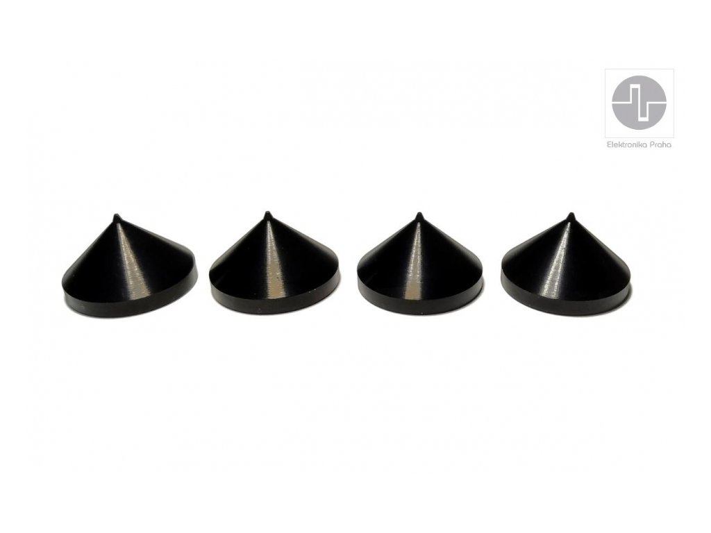 Značka Elektronika Praha je s vámi od roku 1969 a po celou dobu ji reprezentuje typické, elegantní i nadčasové logo, které vzniklo díky kreativitě původního člena hospodářského sdružení, jenž upravil na osciloskopu vykreslený průběh nejrychlejšího signálu do vyobrazené podoby evokující zároveň mechanickou kliku. Logo tak nese informaci, že jde o elektronické produkty vyráběné s vysokým podílem ruční práce. Díky tomu lze říci: máte kliku, že při tvorbě produktů aplikujme typickou českou chytrost a šikovnost, již 55 let máte kliku, že většinu produktů vyrábíme v EU máte kliku, že produkty poskytují mimořádný poměr užitné hodnoty k ceně, možná ten nejlepší na trhu Universální odhmotňovací hroty pod reprosoustavy a audio komponenty / 20mm / Black Universální odhmotňovací hroty pod reprosoustavy a audio komponenty: CD přehrávače, gramofony, zesilovače ... Průměr: 20mm Výška: 15mm Kvalitní a přesné CNC zpracování Oboustranná samolepka obsahem balení Sada obsahuje 4 kusy Barevné provedení: černý elox Made in EUDoplňkové parametry