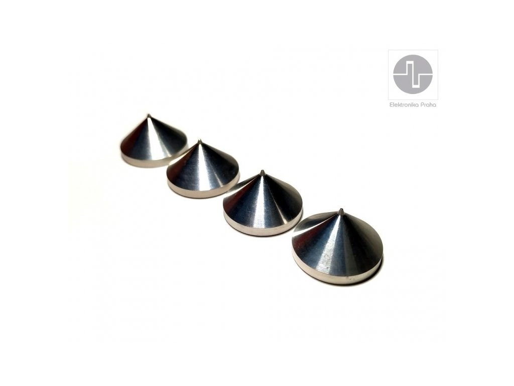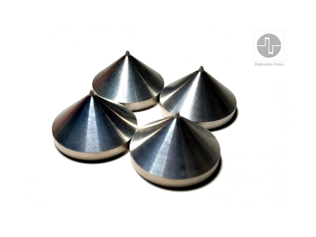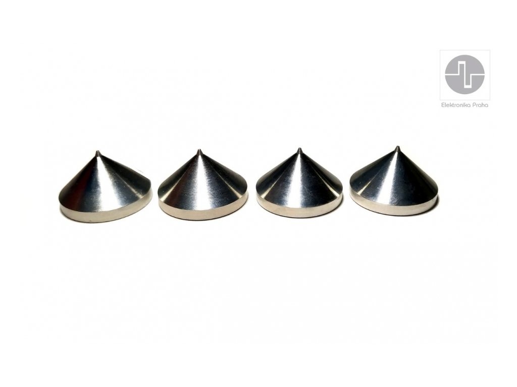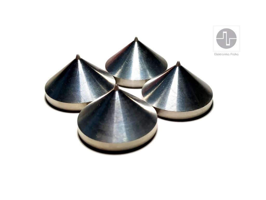 Značka Elektronika Praha je s vámi od roku 1969 a po celou dobu ji reprezentuje typické, elegantní i nadčasové logo, které vzniklo díky kreativitě původního člena hospodářského sdružení, jenž upravil na osciloskopu vykreslený průběh nejrychlejšího signálu do vyobrazené podoby evokující zároveň mechanickou kliku. Logo tak nese informaci, že jde o elektronické produkty vyráběné s vysokým podílem ruční práce. Díky tomu lze říci: máte kliku, že při tvorbě produktů aplikujme typickou českou chytrost a šikovnost, již 55 let máte kliku, že většinu produktů vyrábíme v EU máte kliku, že produkty poskytují mimořádný poměr užitné hodnoty k ceně, možná ten nejlepší na trhu Universální odhmotňovací hroty pod reprosoustavy a audio komponenty / 20mm / Silver Universální odhmotňovací hroty pod reprosoustavy a audio komponenty: CD přehrávače, gramofony, zesilovače ... Průměr: 20mm Výška: 15mm Kvalitní a přesné CNC zpracování Oboustranná samolepka obsahem balení Sada obsahuje 4 kusy Barevné provedení: stříbrné Made in EUDoplňkové parametry