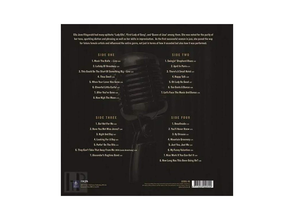 ELLA FITZGERALD - THE GREAT SONGBOOK MARATHON MEDIA INTERNATIONAL 2LP, 180g, Reference master vinyl, Limited edition, 100 % analogové album s referenční zvukovou kvalitou- Analog Experience Exkluzivní obal a příslušenství podtrhuje výjimečnost těchto nahrávek od MARATHON MEDIA INTERNATIONAL SIDE ONE:1. Mack The Knife - Live2. Lullaby Of Broadway3. This Could Be The Start Of Something Big - live4. Thou Swell 5. When Your Lover Has Gone 6. Cheerful Little Earful 7. After You’ve Gone 8. How High The Moon SIDE TWO:1. Swingin’ Shepherd Blues 2. April In Paris 3. There’s A Small Hotel 4. Happy Talk 5. Oh Lady Be Good 6. Ten Cents A Dance 7. Let’s Face The Music And Dance SIDE THREE:1. But Not For Me 2. Have You Met Miss Jones? 3. Night And Day 4. Looking For A Boy 5. Puttin’ On The Ritz 6. They Can’t Take That Away From Me (with Louis Armstrong) 7. Alexander’s Ragtime Band SIDE FOUR:1. Desafinado 2. You’ll Never Know 3. By Strauss 4. Mountain Greenery 5. Just You, Just Me 6. My Funny Valentine 7. Nice Work If You Can Get It 8. How Long Has This Been Going On?Doplňkové parametry