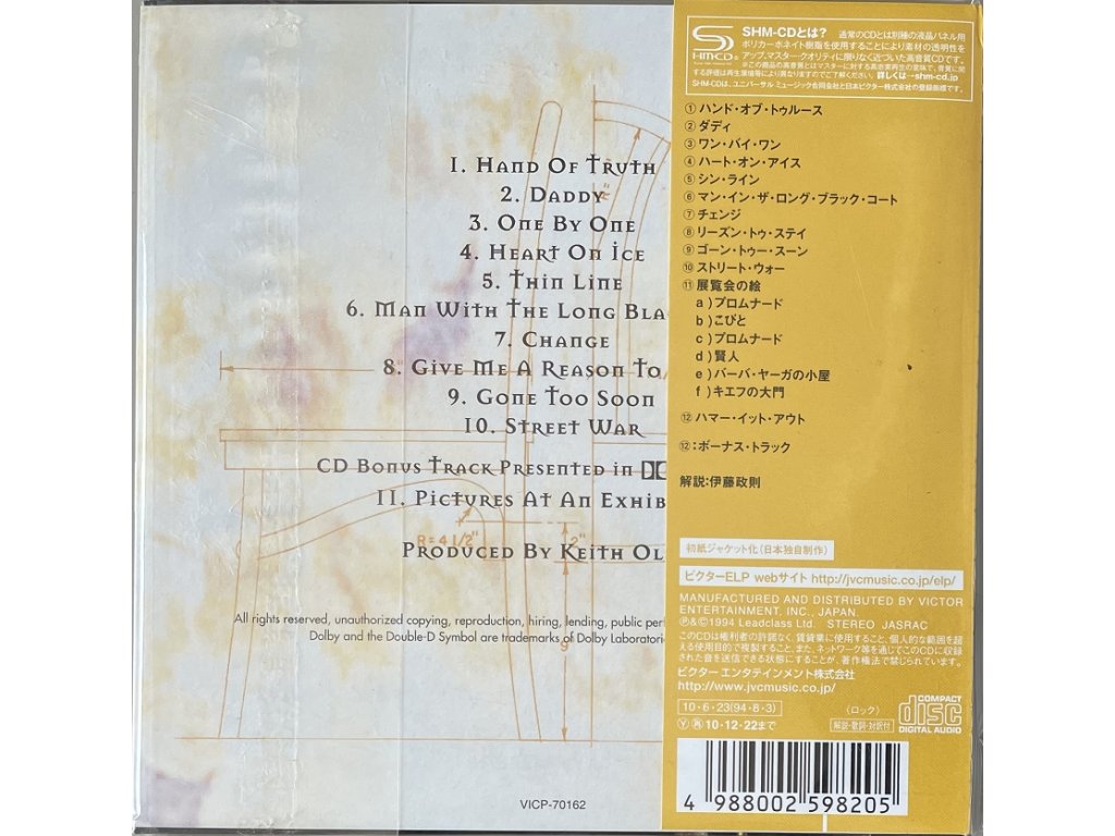 SHM-CD Tracklist: 1-1 Hand Of Truth 1-2 Daddy 1-3 One By One 1-4 Heart On Ice 1-5 Thin Line 1-6 Man In The Long Black Coat 1-7 Change 1-8 Give Me A Reason To Stay 1-9 Gone Too Soon 1-10 Street War Bonus Tracks 1-11 Pictures At An ExhibitionDoplňkové parametry