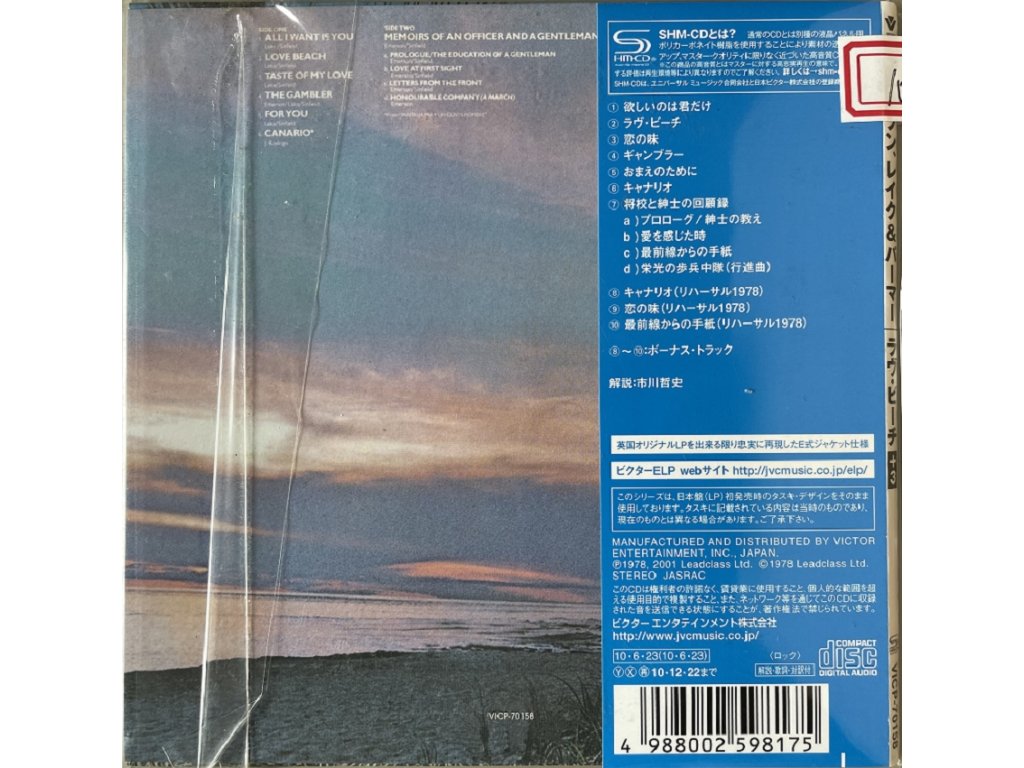 Japan SHM-CD Tracklist: 1. All I Want Is You (2:35)2. Love Beach (2:46)3. Taste of My Love (3:33)4. The Gambler (3:23)5. For You (4:28)6. Canario (from Fantasia Para Un Gentilhombre) {J. Rodrigo} (4:00)7. Memoirs of an Officer and a Gentleman (20:16)- a. Prologue / The Education of a Gentleman (5:33)- b. Love at First Sight (5:37)- c. Letters from the Front (5:20)- d. Honourable Company (A March) (3:46)Total Time 41:01Doplňkové parametry