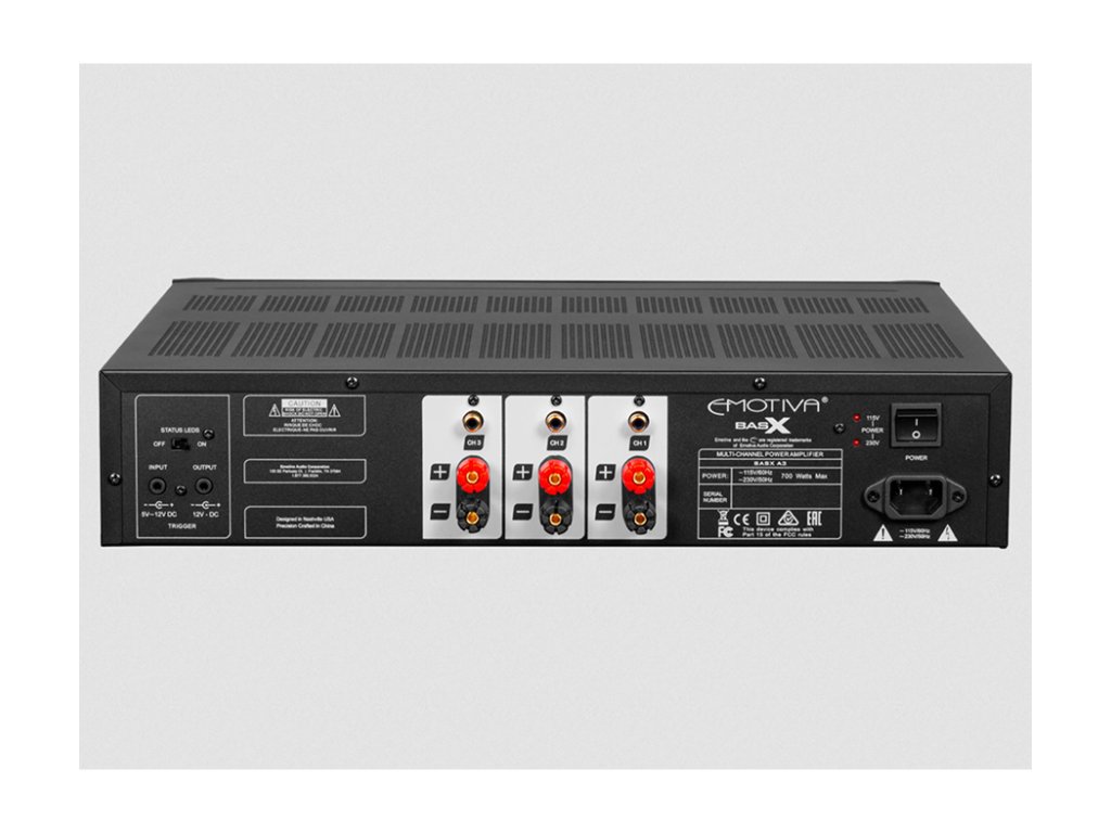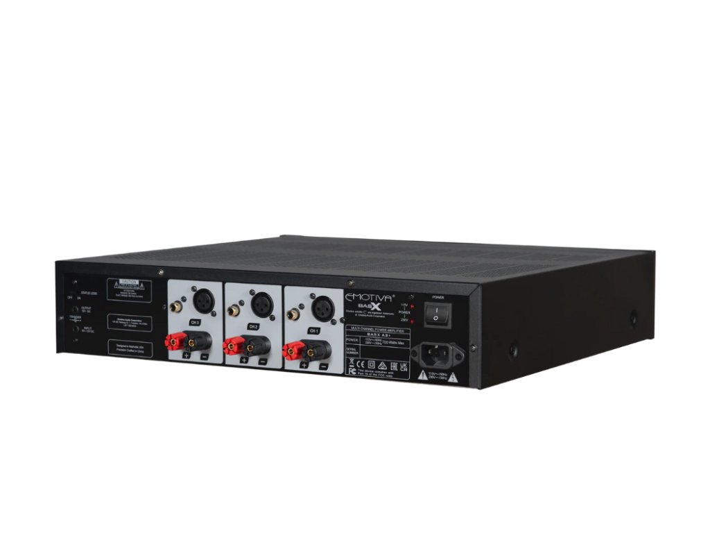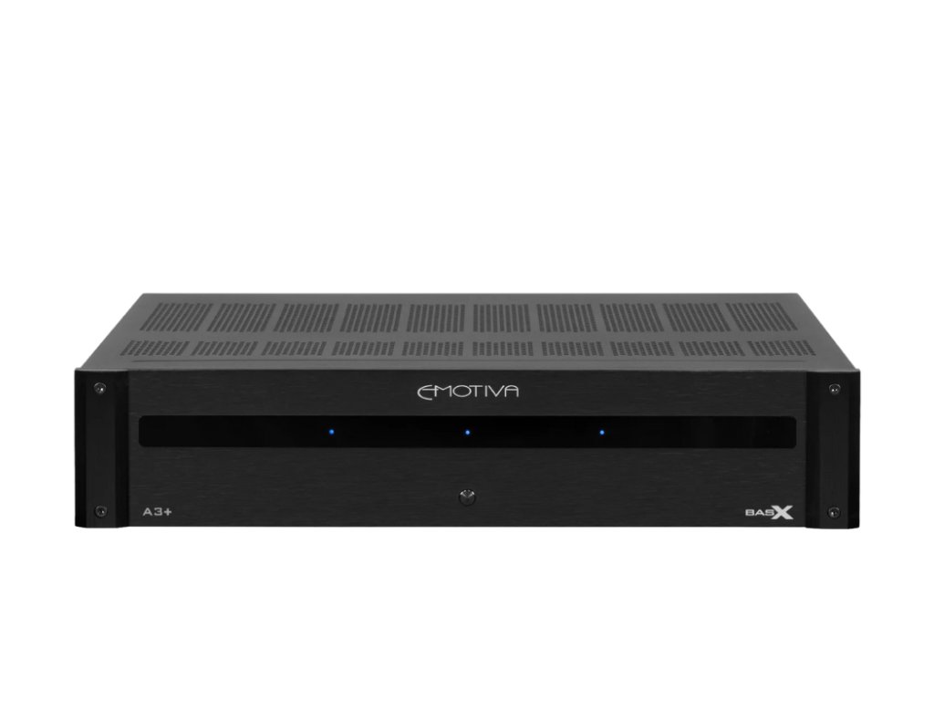 Emotiva BasX A3+ – tříkanálový koncový zesilovač pro domácí kino i stereo Emotiva BasX A3+ je výkonný tříkanálový koncový audio zesilovač, navržený pro milovníky čistého a dynamického zvuku. Nabízí RMS výkon 3 × 140 W při 8 Ω a 3 × 200 W při 4 Ω, s velmi nízkým zkreslením (THD + N < 0,02 %) a vysokým odstupem signálu od šumu (A-vážený > 116 dB). Díky své hybridní konstrukci kombinuje vysoce kvalitní zesílení třídy A/B s moderními funkcemi a skvělou spolehlivostí. BasX A3+ je vybaven výkonným lineárním napájecím zdrojem, inteligentním aktivním chlazením a pokročilou ochranou proti přetížení a zkratu. Nabízí trigger vstup i výstup a navíc praktickou funkci automatického zapnutí při detekci signálu, což oceníte, pokud váš předzesilovač nebo AV receiver nenabízí spouštěcí výstup. K připojení slouží symetrické XLR i nesymetrické RCA vstupy, což umožňuje snadné propojení s většinou audio zařízení. Reproduktorové výstupy podporují připojení pomocí banánků, vidliček i holých vodičů. To vše je zasazeno do pevného kovového šasi s elegantním čelním panelem v designu typickém pro řadu Emotiva BasX. Proč právě BasX A3+? Jako přední výrobce audio techniky věří Emotiva, že špičkový zvuk by měl být dostupný každému – bez složité konfigurace a za férovou cenu. Řada BasX spojuje to nejlepší z obou světů: audiofilní kvalitu zvuku, uživatelskou jednoduchost a spolehlivost. Komponenty BasX jsou navrženy tak, aby bez problémů zapadly do jakéhokoliv systému a nabídly roky bezchybného provozu. Ať už stavíte nový Hi-Fi systém, rozšiřujete domácí kino, nebo jen chcete slyšet vaši hudbu tak, jak má skutečně znít – BasX A3+ je správná volba. Ideální využití: napájení hlavních (L/C/R) kanálů v systému domácího kina upgrade výstupních kanálů AV receiveru s pre-out výstupy výkonný základ pro stereo systém s možností budoucího rozšíření bi-amping reproduktorů pro vyšší výkon a kontroluDoplňkové parametry