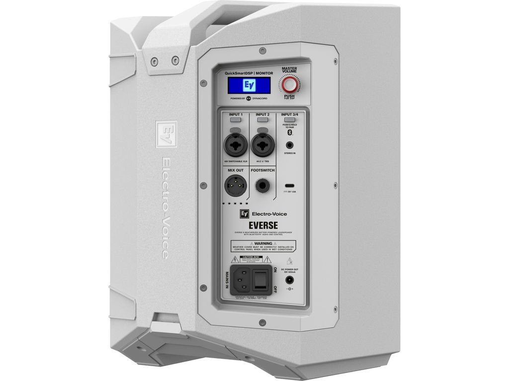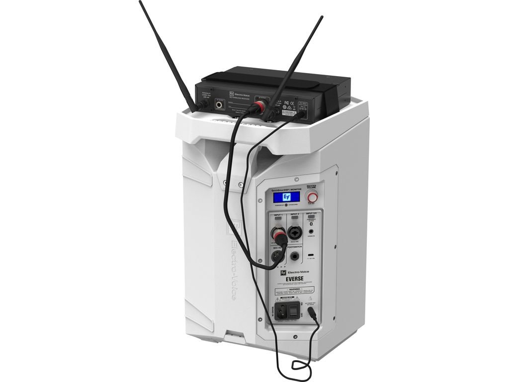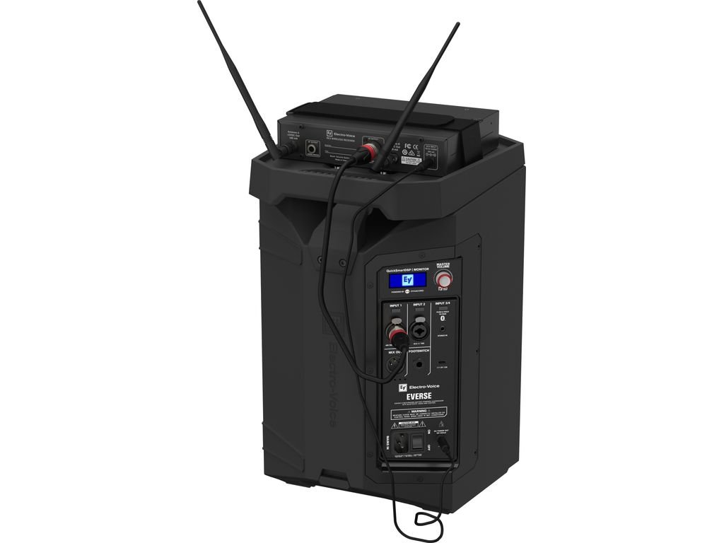 Profesionální dvoupásmová bateriová reprosoustava, max. výkon 400W, max. doba provozu až 12 hodin. 8" palcový basový reproduktor, 1" výškový reproduktor, frekvenční rozsah 50Hz-20kHz (-10dB), max. SPL 121dB. Tři vstupy (2x kombo XLR/TRS + 1x TRS 3,5mm) - připojit můžete mikrofon dynamický i kondenzátorový (fantomové napájení +48V), kytaru (Hi-Z input), footswitch pro ovládání efektové jednotky a k tomu třeba ještě podkres z mobilu (TRS 3,5mm). Můžete též připojit bezdrátovou sadu a to vč. uchycení a napájení 12V DC (volitelné příslušenství EVERSE8-TRAY). Reprosoustava je vybavena DSP procesorem vč. vychytávek jako například delay line, efektová jednotka s 30 efekty, Bluetooth streaming s možností ovládání až 6-ti reprosoustav (aplikace Quicksmart mobile). Mezi další vybavení patří USB-C výstup pro dobíjení vašich zařízení (5V, 1,5A). Trocha technikálií na závěr - rozměry (VxŠxH) 400x275x272mm, hmotnost 7,6kg, kapacita vyměnitelné baterie (EVERSE8-BAT) je 86,4Wh, barva černá.Doplňkové parametry