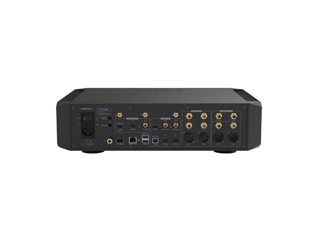 EverSolo DMP-A10 Hi-end audio streamer Recenze DMP-A10 na Hi-Fi Voice. Eversolo DMP-A10 dostal ocenění EISA v kategorii "premium streamer" pro rok 2025-2026. Více informací zde. Vyrobeno jako umělecké díloŠasi DMP-A10 spojuje moderní estetika s romantikou a precizně zkonstruované součástky s technologií CNC. Díky rozměru 430 mm se bez problémů hodí do špičkových audiosystémů a kombinuje funkčnost a eleganci. Přesnost se snoubí s čistotouDíky vysokorychlostnímu systému elektrické izolace DMP-A10 odděluje šum a rušení z různých plošných spojů. Úplná fyzická izolace eliminuje jakékoli možné rušení zvukových obvodů při přenosu signálů a zajišťuje, že zvukový signál zůstane čistý a nerušený. Panel displeje má stínící design, jehož výsledkem je vynikající čistota a přesnost zvuku pro bezkonkurenční zážitek z poslechu. Izolovaný USB zvuk a maximální přesnostZačleněním pokročilého elektrického izolačního obvodu DMP-A10 minimalizuje rušení z vysokošumových zdrojů napájení a problémy se zemnící smyčkou při připojování externích DAC a zařízení USB. Pomocí technologie iCoupler® přenáší jak clock signál, tak data na izolovanou stranu ve správném pořadí a poté je znovu synchronizuje, aby byla zachována konzistence. Tím je zajištěno, že signály USB jsou spolehlivě přenášeny, snižuje se chvění a zachovává se přesnost signálu. Dvojitý výstup subwooferuDíky dvěma výstupním portům pro subwoofer vám DMP-A10 umožňuje podle potřeby připojit jeden nebo dva subwoofery nebo dokonce vypnout funkci subwooferu. Režimy MIXER a STEREO lze snadno přepínat. (*Funkce subwooferu je k dispozici pouze pro PCM pod 192 kHz.) Systém hodin OCXONa zakázku vyvinutá technologie řízení teploty pro systém hodin OCXO zajišťuje, že oba krystalové oscilátory (45,1584 MHz a 49,152 MHz) pracují při konstantním optimálním teplotním bodě, čímž eliminují kolísání frekvence způsobené změnami teploty a poskytují extrémně nízký šum. S úrovněmi jitteru nižšími než 50fs jsou audiosystému poskytovány přesnější signály, což zlepšuje čistotu, detaily a zvuk. Rozhraní SFP sítěAby se eliminovalo rušení vysokofrekvenčním šumem v síťových přepínačích a dalších síťových zařízeních, DMP-A10 zavádí port SFP Fiber, který uživatelům umožňuje připojit DMPA10 k místní síti prostřednictvím optických vláken. V tomto případě je čistší zvuk dodáván bez elektrického propojení mezi síťovým přepínačem a DMP-A10. Pro snadnou integraci jsou podporována také tradiční ethernetová připojení RJ45. (*Modul SFP je třeba zakoupit samostatně.) Křišťálově čistý zvukPostříbřené monokrystalické měděné dráty, které se vyznačují vynikající vodivostí a přenosem signálu, jsou použity v audio terminálech DMP-A10, což přináší větší čistotu, průhlednost a detaily. Technologie korekce místnostiEversolo Digital Room Correction analyzuje DMP-A10 vaše poslechové prostředí pomocí přiloženého přesného mikrofonu a upravuje zvukové frekvence pomocí algoritmů, aby se eliminovaly akustické problémy. Výsledek? Zážitek z poslechu, který je pohlcující a živější, šitý na míru vašemu prostoru. Převodník z digitálního na digitálníDMP-A10 podporuje funkci DDC (převodník z digitálu na digitál). Digitální signály z USB vstupu, koaxiálního/optického vstupu a vstupu ARC lze po různých EQ úpravách vysílat jako signály SPDIF nebo analogové signály. Vstup analogového signálu lze navíc zachytit pomocí vysoce výkonného ADC (až 192 kHz) a poté jej po úpravách EQ vysílat jako signály SPDIF nebo analogové signály. Robustní výkon, ultra nízká hlučnostPro další zlepšení čistoty zvuku je DMP-A10 vybaven duálními napájecími zdroji s ultra nízkým šumem, které poskytují stabilní výkon pro digitální systém i analogové audio obvody. Zvlnění analogového audio zdroje lze snížit pod 30μVrms a vytvořit tak tiché a čisté prostředí pro poslech. Navíc obsahuje patentovanou technologii inteligentního přepínání pro lineární napájecí napěťový vstup. Plně symetrický obvod analogového předzesilovačeDMP-A10 je vybaven vysoce výkonným plně symetrickým obvodem předzesilovače, který podporuje analogové vstupy XLR/RCA. Je vybaven analogovým ovládáním hlasitosti R-2R, který zajišťují ultranízký šum a zkreslení, poskytují lepší poměr signálu k šumu a dynamický rozsah. Technologie EOSEversolo Original Sampling-rate Audio Engine (EOS) zajišťuje původní výstup vzorkovací frekvence z vašich oblíbených hudebních aplikací. DMP-A10 obchází omezení SRC a posílá zvuk do vašich reproduktorů bez jakýchkoli změn. Podporuje také přímý výstup z aplikací třetích stran, jako je Apple Music, pro bezztrátové přehrávání ve vysokém rozlišení. Špičková technologieVýběr materiálu pro DMP-A10 jakožto vlajkovou loď all-in-one streamer je extrémně důležitý. DMP-A10 je vyroben z audiofilských komponent z celého světa. Kondenzátory WIMA z Německa, operační zesilovače TI audio z USA, NICHICON a díly Murata SMT z Japonska – každý detail je navržen pro špičkovou kvalitu zvuku. Zvukový procesor XMOS316Díky procesoru XMOS316 třetí generace poskytuje DMP-A10 rychlejší zpracování a USB šířku pásma a podporuje bezztrátový přenos dat. Porty USB podporují až DSD512 Native a PCM768 32bit. Optické a koaxiální porty podporují DOP64, PCM192 24Bit. SFP moduly Pár 1310nm SFP modulů stejné značky a typu například:StarTech SFPGLCLHSMST, 10Gtek ASF13-24-10, TP-Link TL-SM311LSA-2KM nebo TP-Link TL-SM312LS-40KMPoznámka: 1. Modul SFP musí být kompatibilní s vybraným přepínačem SFP2. Nepodporuje SFP+ DAC řešeníPoháněný špičkovým čipem