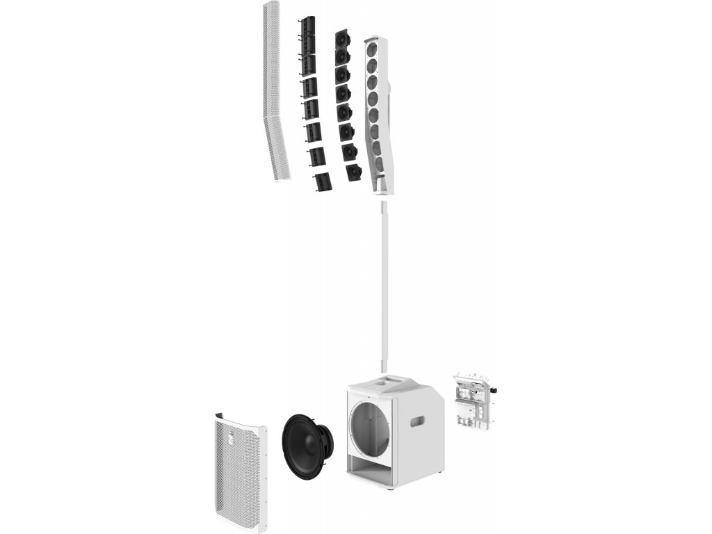 Aktivní systém skládající se z aktivního subwooferu, vybaveného DSP procesorem (osazení 12" reproduktor EV) a pasivní sloupové reprosoustavy osazené osmi 3.5" měniči. Nenechte se splést kompaktními rozměry, EVOLVE dokáže soupeřit nejen zvukem, ale také výkonem s mnohem rozměrnějšími bednami. Unikátní design s kabeláží integrovanou v rozpěrce znamená elegantní čistou instalaci, která se bude dobře vyjímat i na tak náročných akcích jako je VIP svatba. Přes malé rozměry, které jistě zaimponují každé produkční, hraje systém EVOLVE kvalitně, hlasitě a široce, že to člověka až překvapí. Vaši hosté a posluchači budou jistě spokojeni. "M" v názvu znamená "vybaven" mixážním pultem se čtyřmi mic/line vstupy a jedním stereo vstupem. Samozřejmostí je Bluetooth pro stream a ovládání "apkou" (samostatný vstup). Pokud si přejete stereo konfiguraci, je možné spojit dva Evolve50M pomocí standardního CAT5 kabelu (nejedná se o síťový konektor) a získat ještě jednou tolik vstupů. Tato varianta je v bílé barvě.Doplňkové parametry
